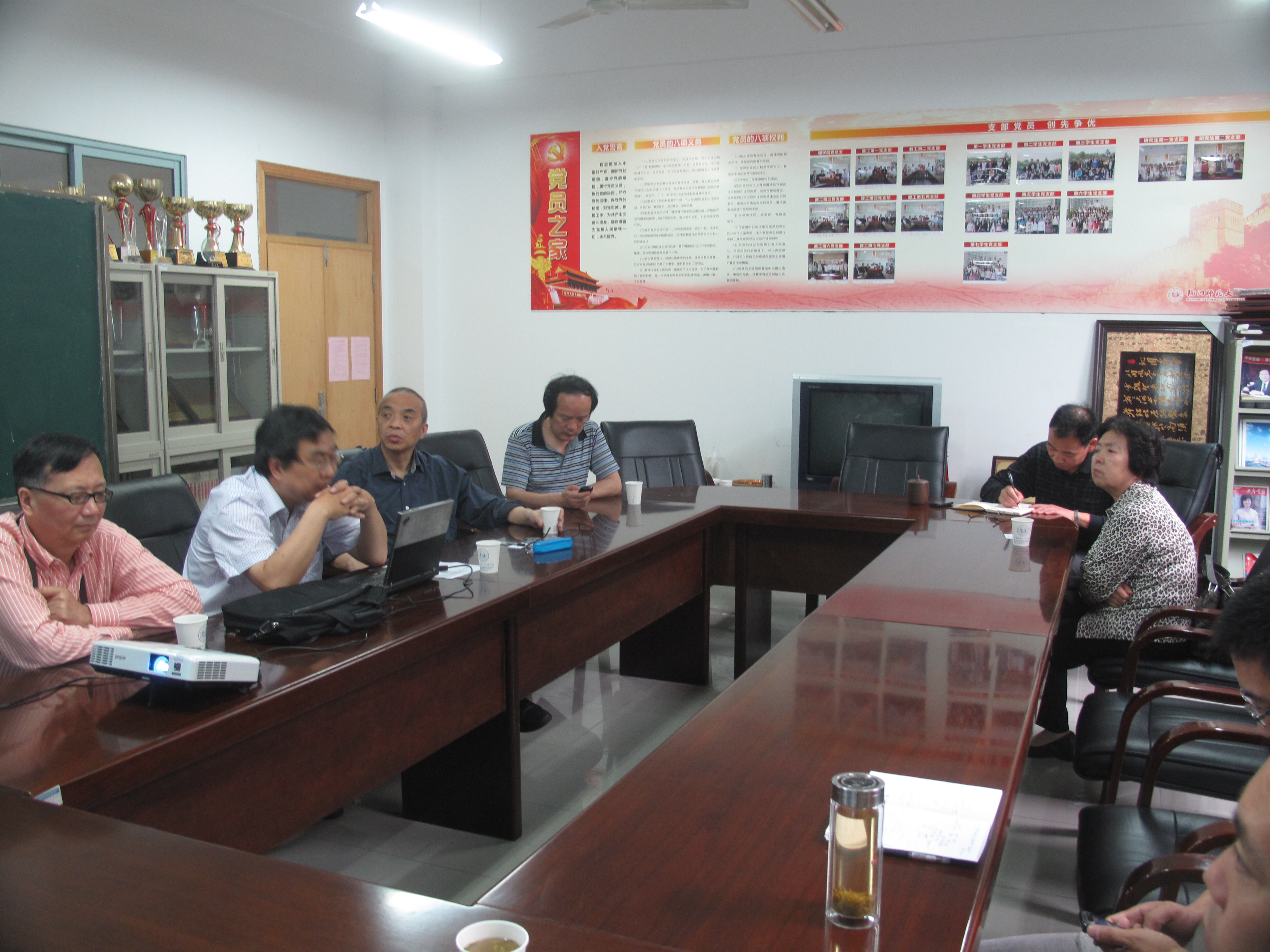 王教授在听取物理实验教学中心建设汇报