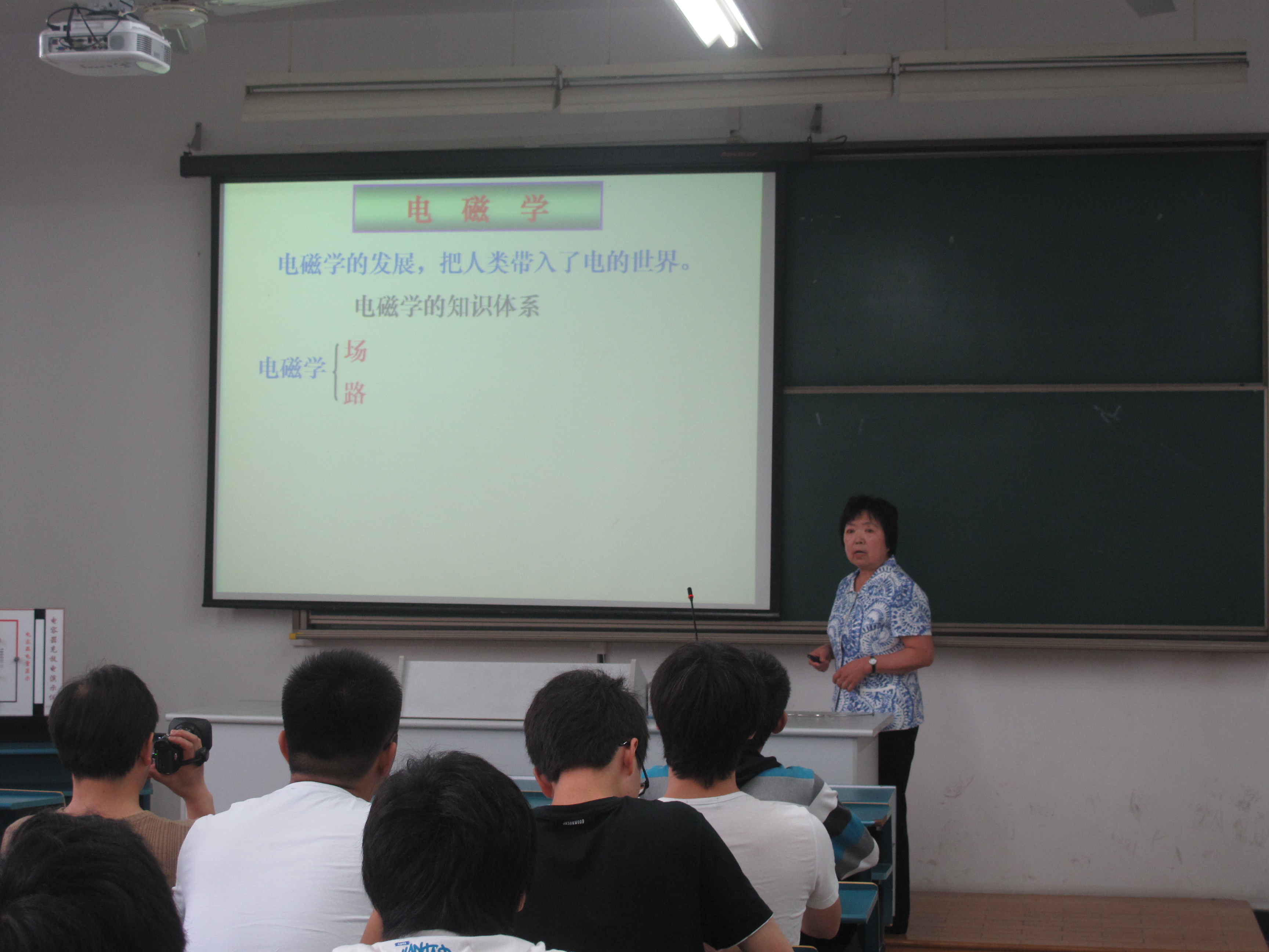 上午9:30,教室里早已坐满了学生和老师,大家相互交流,翻看书本,都期待着王教授精彩讲课的开始。随着铃声的响起,王教授也开始了她的讲课。首先,她通过前面同学所学到的电磁学的基本知识,由电压、电流、电荷介绍了电容器的基本原理。之后,王教授举出了几个相关的例题,让大家当堂灵活地将公式运用起来。接下来,王教授把重点放在了电容器的相关运用上,介绍了电容器有串联和并联的两类连接方式,并详细介绍了这两种方法的在生活中的具体应用。此外,她还强调要将知识与实际运用相结合,从原理出发,理解并掌握扩大电容器的电容量需从增强耐压性、并联电容器和增强电解质属性三方面来着手。最后,王教授通过几道典型例题为大家简单讲解这类电容器题目解题的计算步骤,并让大家要从基础的概念进行总结,将所学知识灵活运用。
