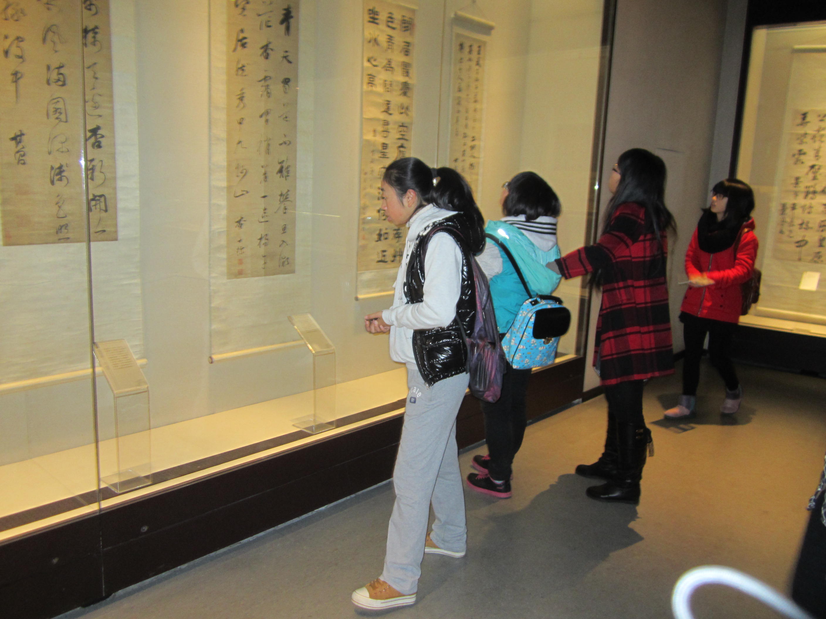 首先,参与者在一楼观看了不同时代的文物。公元前的配玉、战国时的玉璧、南宋时的瓦当等这一系列珍贵的文物让大家深刻地了解了古人的生活。二楼展示的是杭州名人的书画。在众多书法作品中,大家仔细品读了中国历史上的杰出教育家——李叔同的书法作品。纵观李叔同的遗墨,清静似水,恬淡自如,将“平淡美”书写的淋漓尽致。进入三楼,大家都被博物馆中不同版本,不同国家,不同形状的邮票所吸引,他们驻足在邮票前,感受着当时的人文情怀。最后,大家兴致勃勃地在四楼进行了各种关于杭州历史、风俗等各方面的自我小测试。