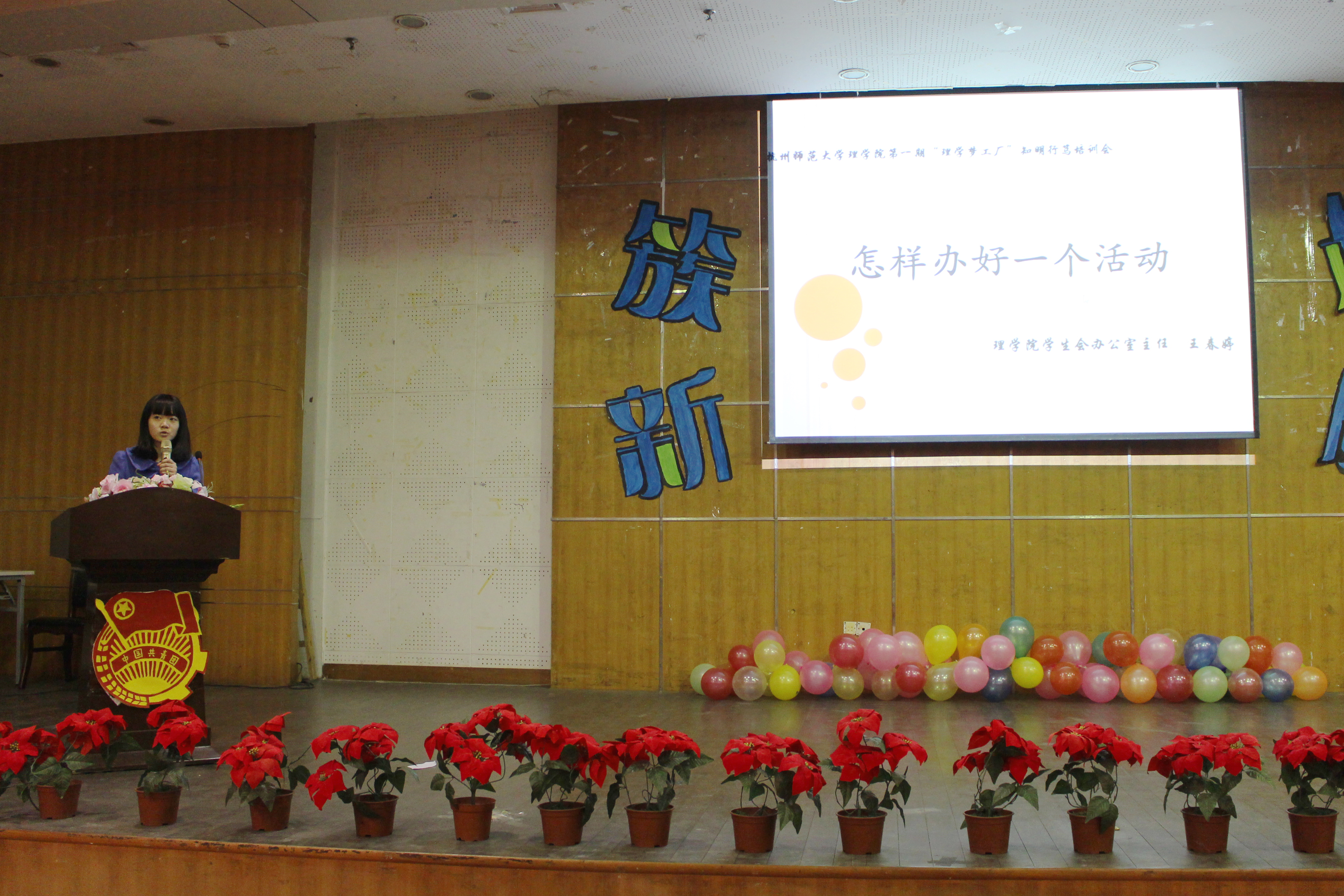 学生会办公室主任王春婷对“如何办好一场活动”这一问题向大家做了详细的说明,与会的干部与干事都认真听讲。随后,来自学生会的陈丰与团委的杨祎晗分别代表干部与干事发言。