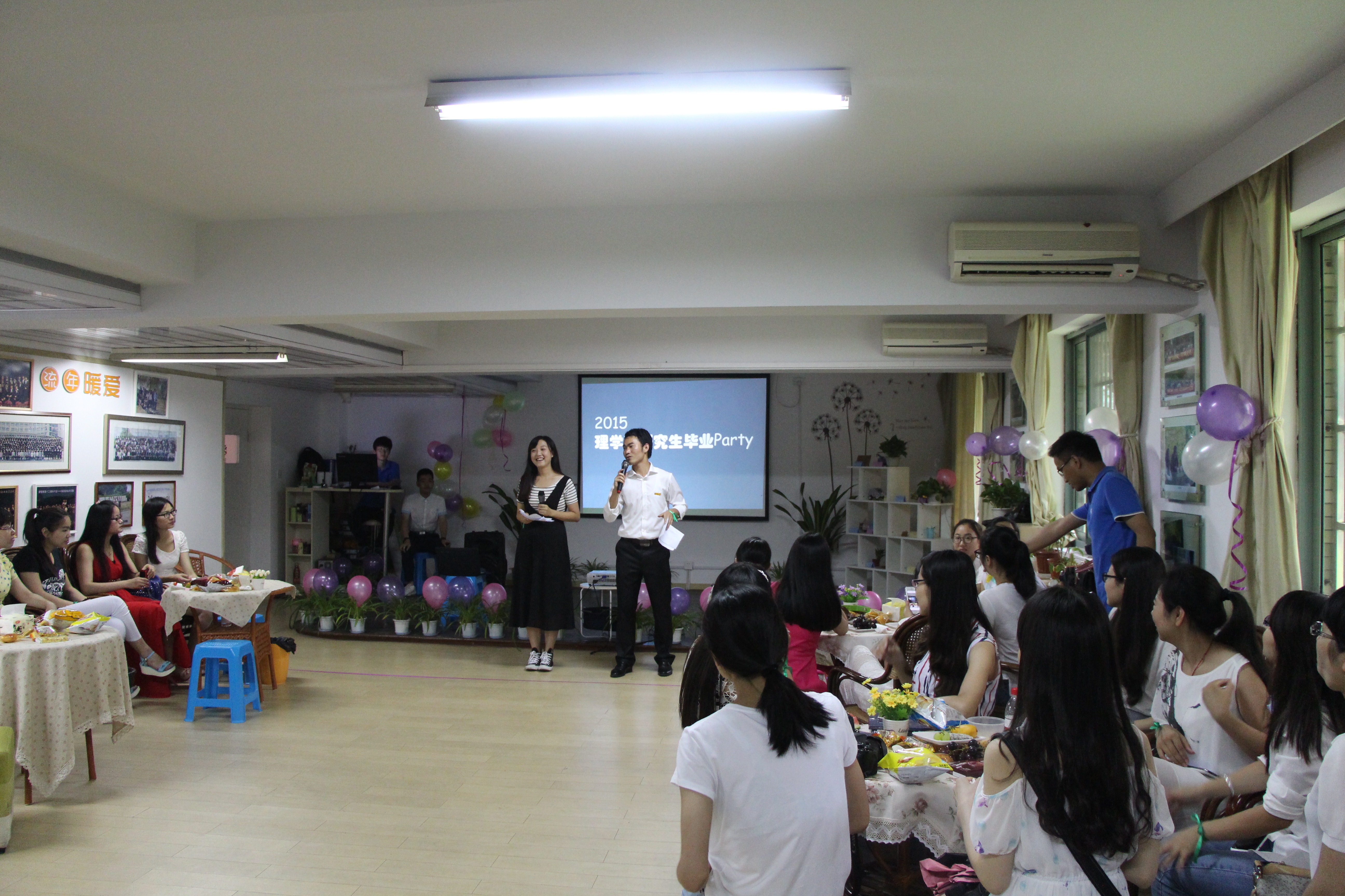 在2015届毕业研究生即将毕业离校之际,理91制片 于6月17日在理学家园举办了属于他们的毕业Party,作为送给他们的一份礼物。现场布置的很漂亮,外面设有红地毯,台桌上摆放了自助果盘,毕业生们热情参与,现场氛围温馨而美好。