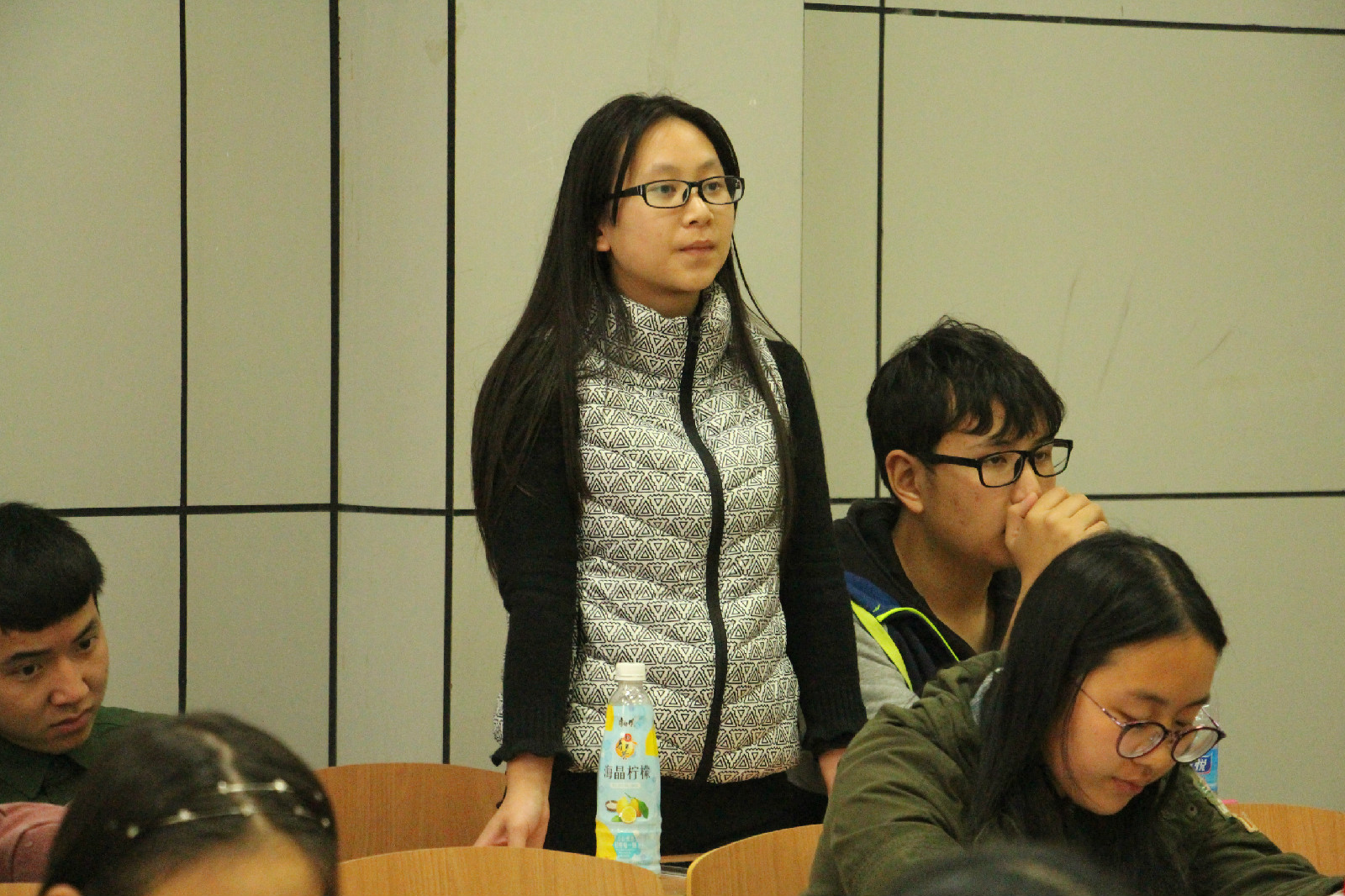 首先上台的是曾获数学建模国赛二等奖的王轶明,他强调了在学科竞赛中非常重要的三个要素:一是自主学习,二是团队协作,三是贵在坚持。之后,他又简单介绍了自己校赛、省赛、国赛的经历。接着,浙江省大学生力学竞赛一等奖得主施鹏钦与同学们分享了他的竞赛历程。他提出,在竞赛中必不可少的就是兴趣和主动性,这两点会给竞赛过程带来极大的动力。随后一些同学提出了自己的问题,施鹏钦为学弟学妹们进行了现场解答。