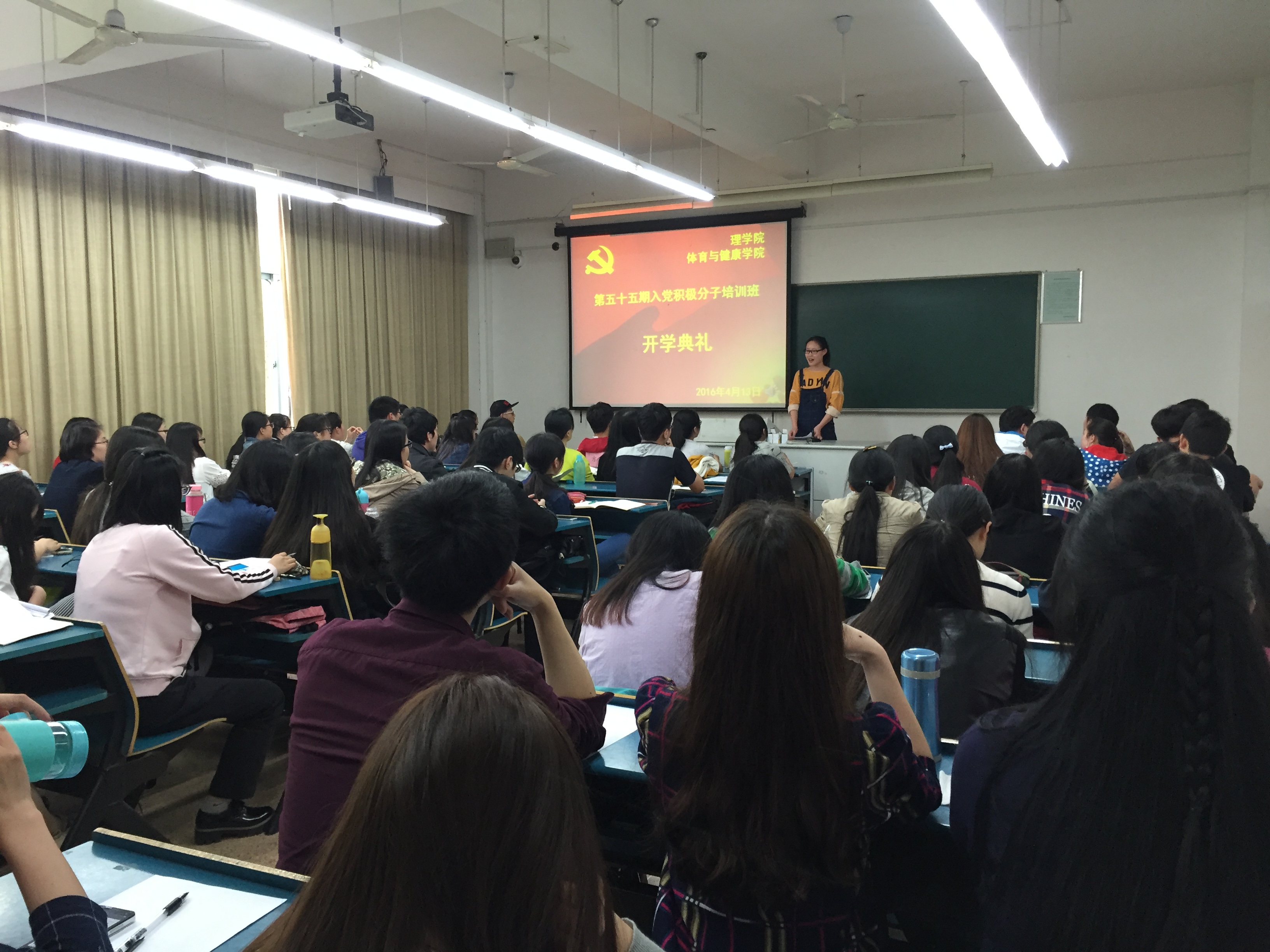 4月13日下午,由理91制片 与体育与健康91制片 共同举办的第五十五期入党积极分子培训班于A楼211举办开班典礼。理91制片 党委副书记应金飞、体育与健康91制片 党委副书记方莉出席了开班典礼,理91制片 辅导员龙芳主持开班典礼。