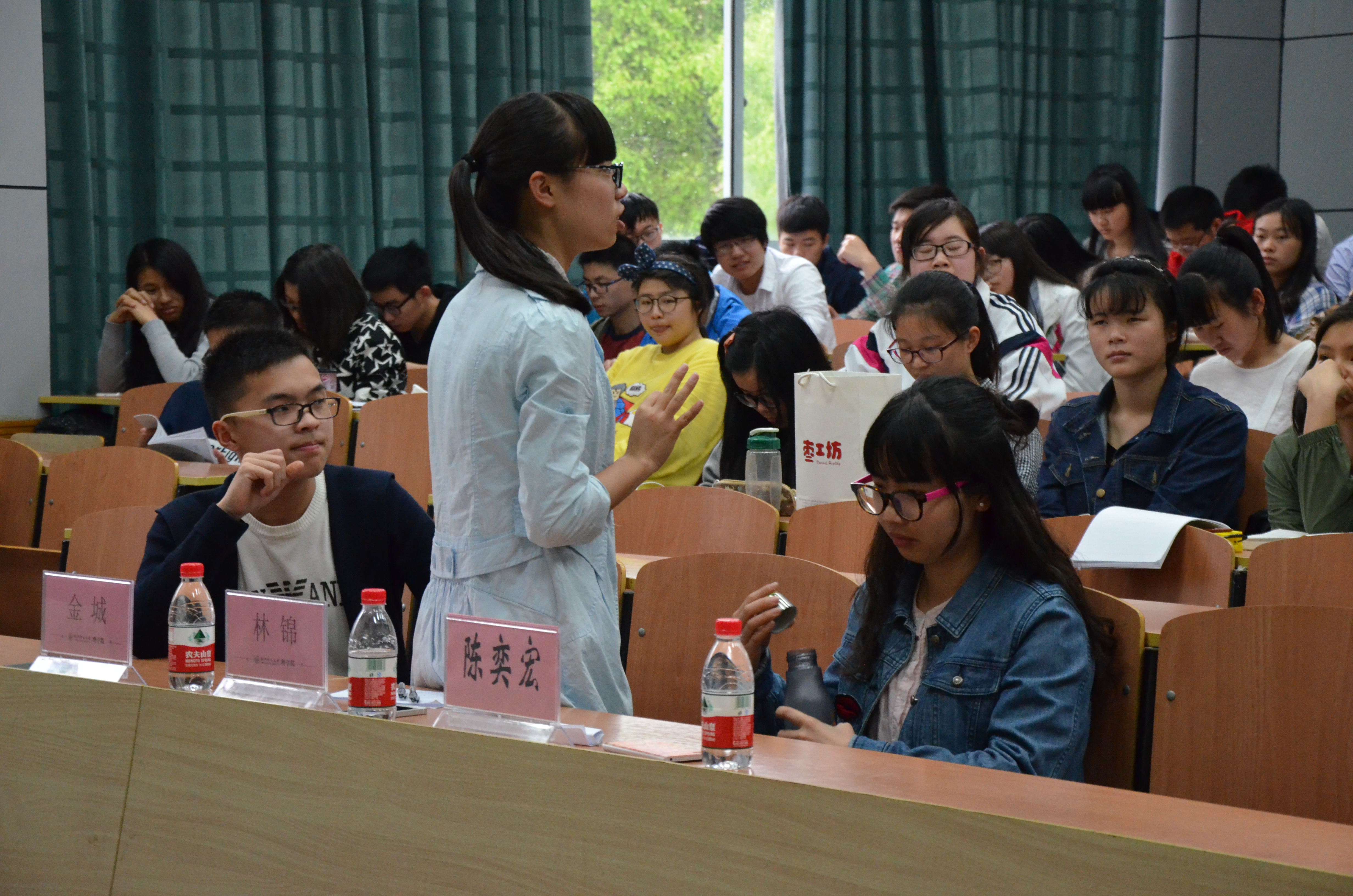 来自地理信息科学专业的金城首先谈了自己对于学习的态度,并且建议同学们能够有效运用时间轴来管理时间。随后,他又分享了自己的时间作息表,规律的生活能有效提高自己的学习效率。同时,他也希望同学们能够多思考、多模仿、多看书,以此来提升学习能力。之后,数学系的林锦从专业学习和学科竞赛两方面进行了叙述,从小喜欢数学并立志当老师的她,用亲身经历来说明对专业保持喜爱的重要性。她认为在学习方面,必须要养成独立学习的习惯,更要重视学习的氛围。另外对于学科竞赛,林锦建议大家要对自己有自信,多做往年试卷、强化自制力。第三位发言的陈奕宏也分享了自己的学习方法,首先要做到多方面发展,多去尝试、多去收获。其次是高效上课,课堂上做到认真学习就能大大节约课后的复习时间。最后是学习与工作的合理调节,绝不能顾此失彼。