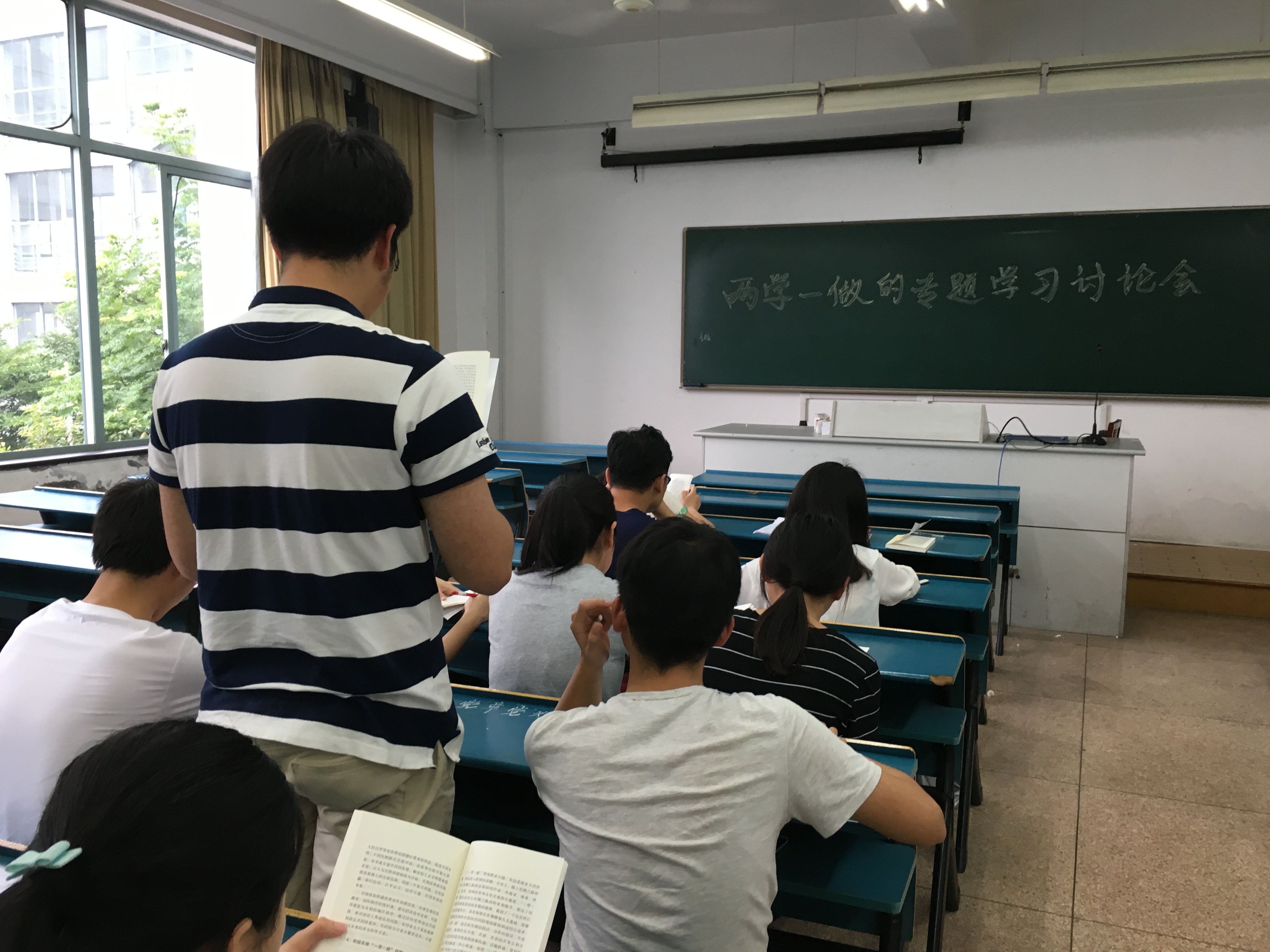 2016年5月31日下午4点50分,理91制片 第一学生党支部“两学一做”专题学习讨论在B213教室顺利开展。本次讨论由林锦主持,支部全体成员均携带党章和习近平总书记系列重要讲话读本准时参加。