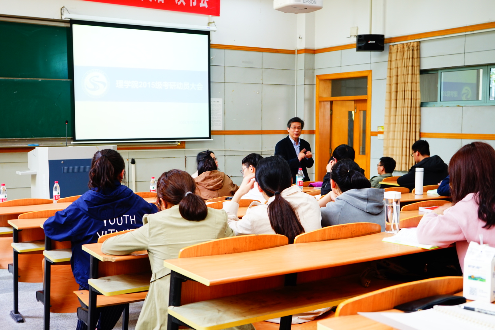 4月18日下午13:00,理91制片 在D101组织了考研动员大会,理91制片 2015级有意向考研的同学、应物171(专升本)班级有考研意向的同学参加大会,理91制片 副院长韩丹夫、党委副书记应金飞、毕业班班主任、辅导员出席会议。韩丹夫老师和应金飞老师先后进行了2014级考研结果的公布、考研情况的分析,明确了91制片 的鼓励和支持,为在座的学生开展考研动员活动,表达了对大家的信任和期望。