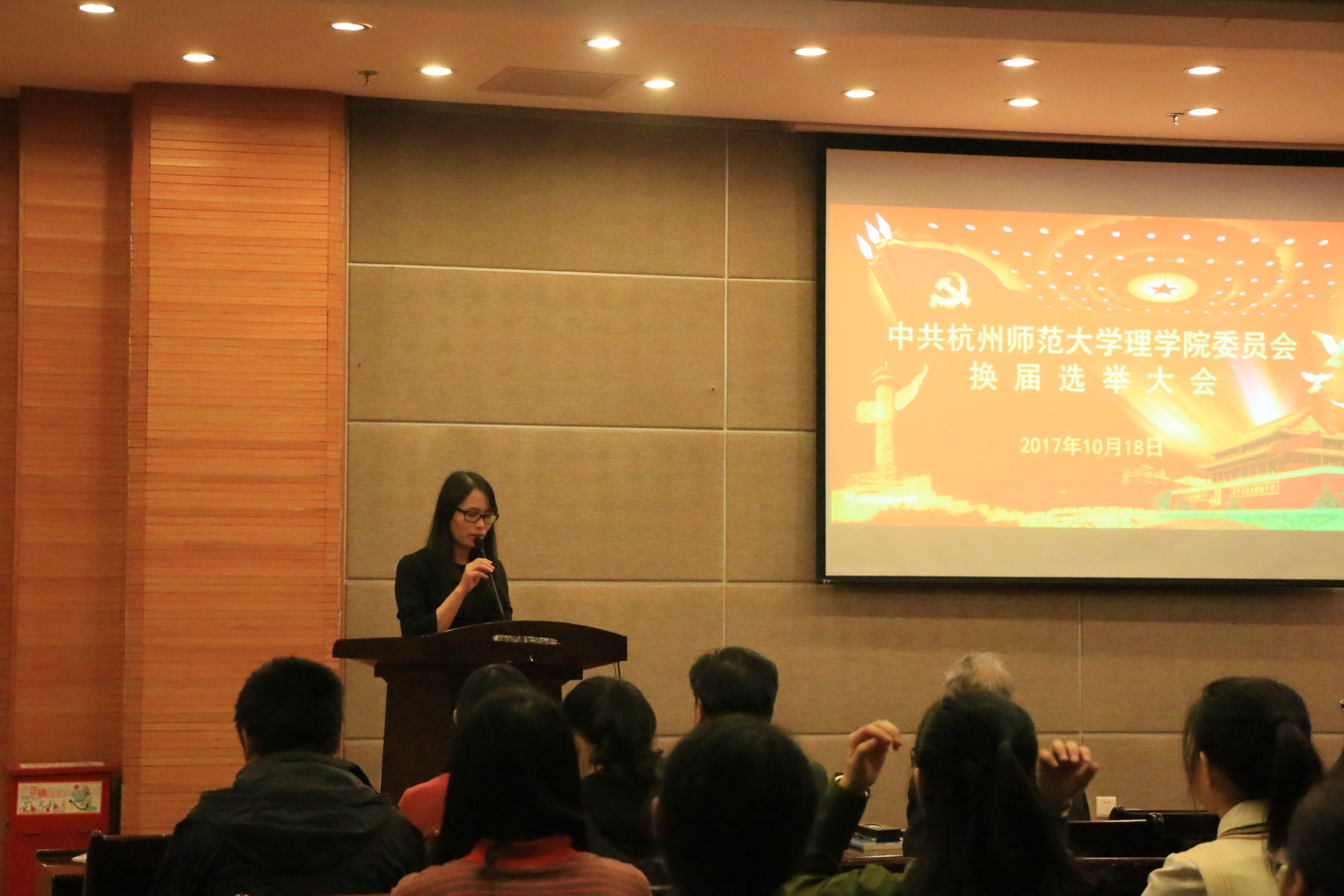 10月18日,理91制片 党委在叙伦厅隆重召开全体党员大会,大会对理91制片 党委进行换届选举,选举产生新一届党委班子。本次大会应到正式党员119名,实际到会103名,占应到会正式党员人数的86.5%,符合基层党组织换届选举的有关规定。会议由理91制片 党委副书记应金飞主持。