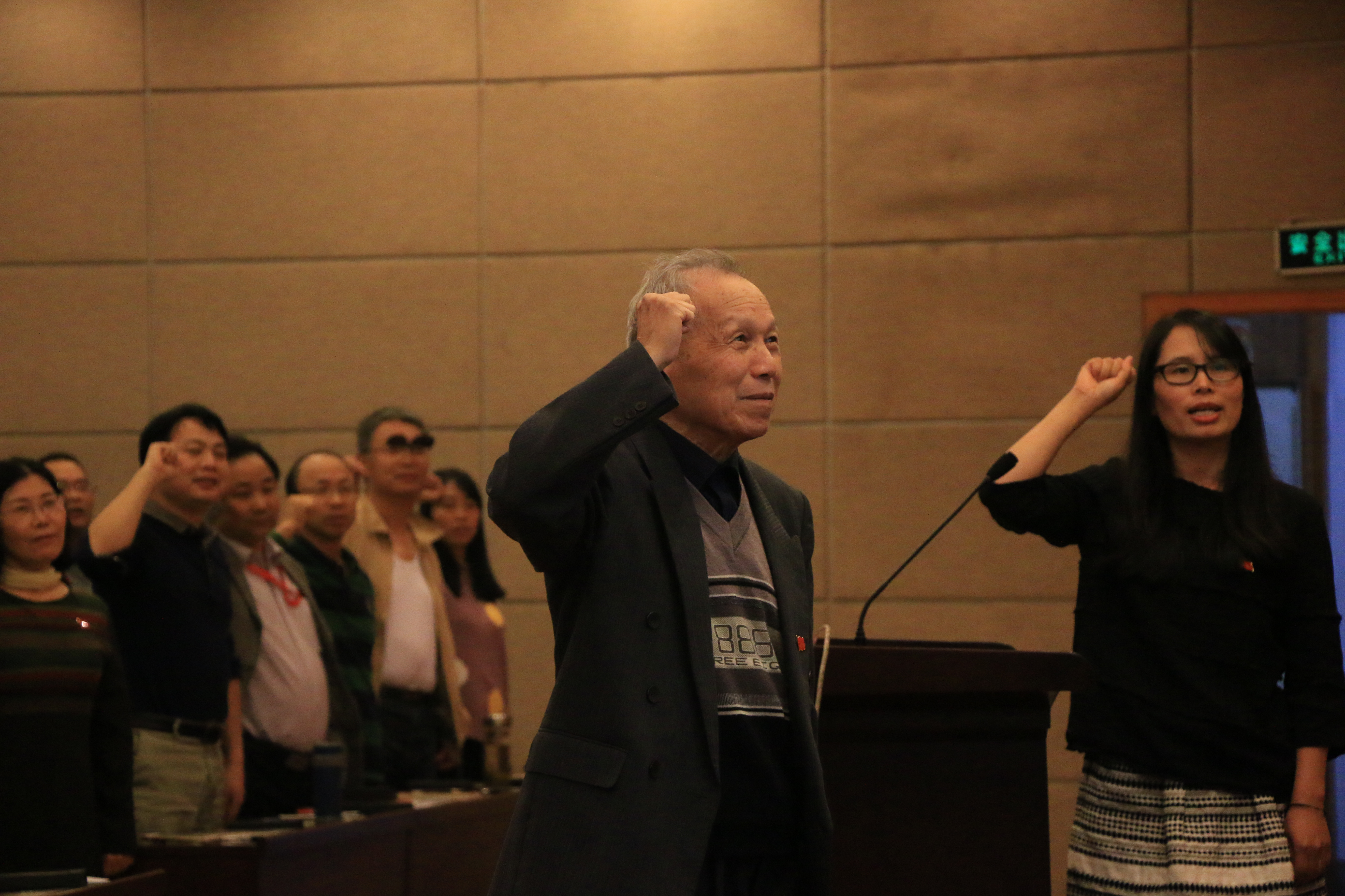 值得一提的是,大会别出心裁地设计了重温入党誓词的环节,全体党员在退休党员任顺木同志的带领下重温了入党誓词,部分党员同志还在现场分享了他们入党时的感想感悟。