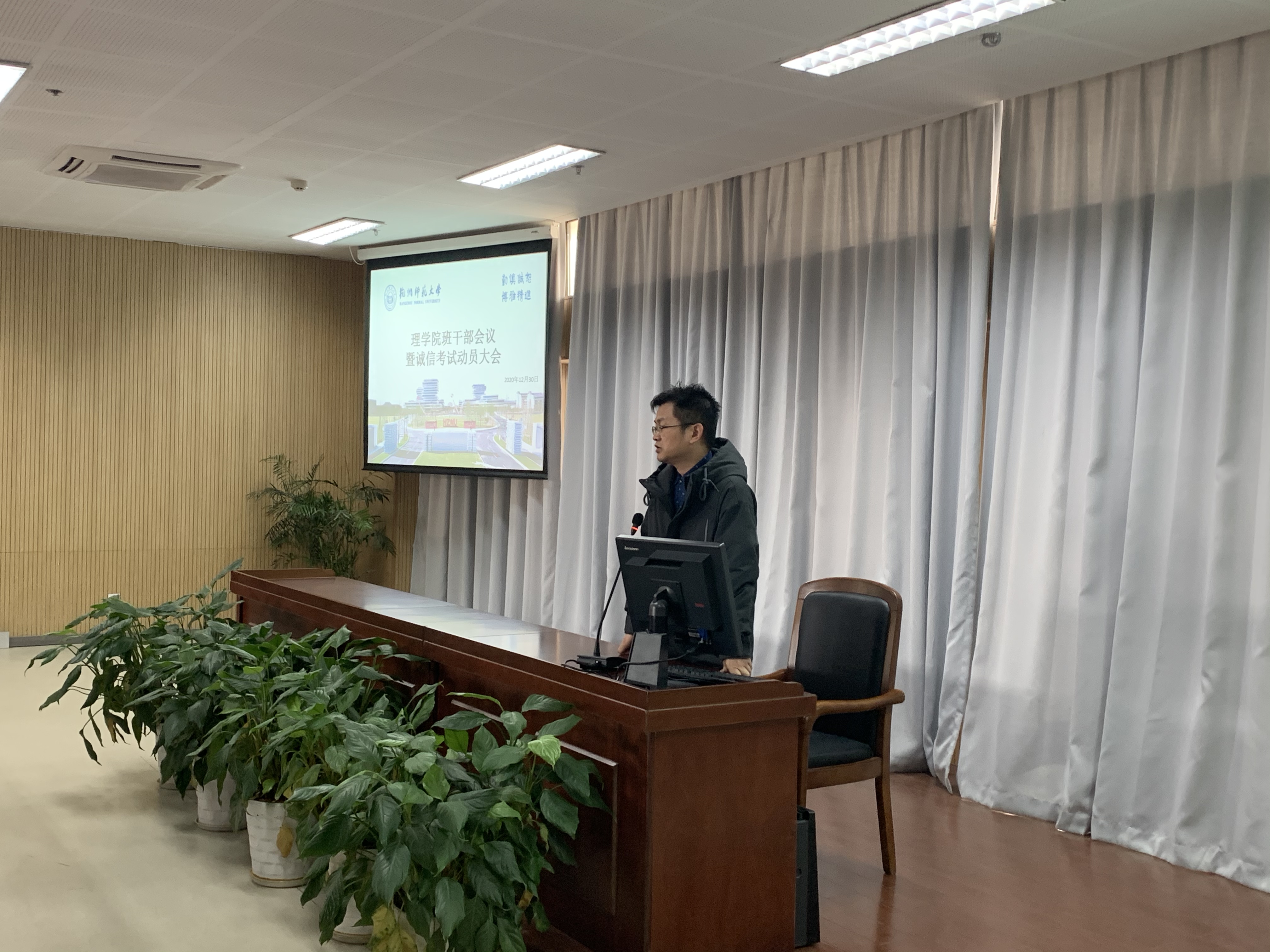 为增强同学们诚信考试意识,严肃考风考纪,营造自立自律、刻苦学习的期末备考氛围,12月30日,理91制片 召开全体班干部会议暨诚信考试动员大会,91制片 党委副书记应金飞、院长助理马国春、教务科科长王蕾、各年级辅导员以及各班级主要学生干部参加了此次大会。
