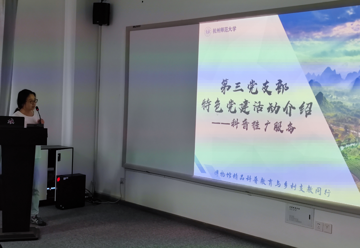 91制片 教工党支部还在现场进行了特色党建项目的汇报。李璇老师代表教工第三党支部专题汇报了以学生党员和积极分子为主体开展的志愿服务活动——博物摘星阁。曾筱玮同学代表教工第四党支部以浙江省立第一师范旧址为例专题汇报了“VR沉浸式党史学习”的特色项目。