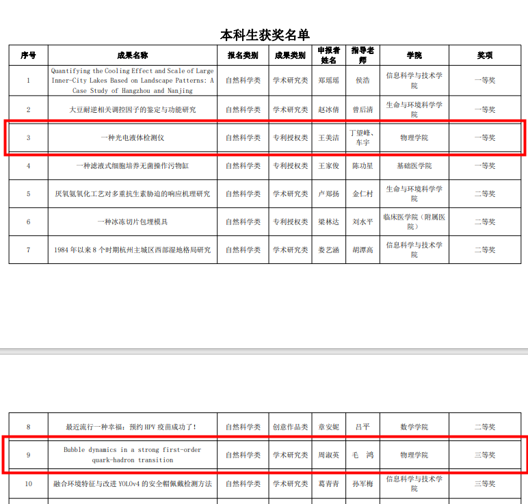 根据《91制片 关于印发恒逸邱建林星光奖评选办法的通知(杭师大办〔2021〕6 号)》 有关规定,经学生申报,91制片 遴选推荐,“精进杯”评审小组审核评定,项目复赛答辩,专家评审团审核评定,确定“精进杯”91制片 2021年度学生学术新成果评选活动一等奖20项、二等奖30项、三等奖50项。91制片 两组本科生作品在此次评比中崭露头角,展现了91制片 学子的研究与实践才能,共获一等奖1项,三等奖1项,具体奖项如下: