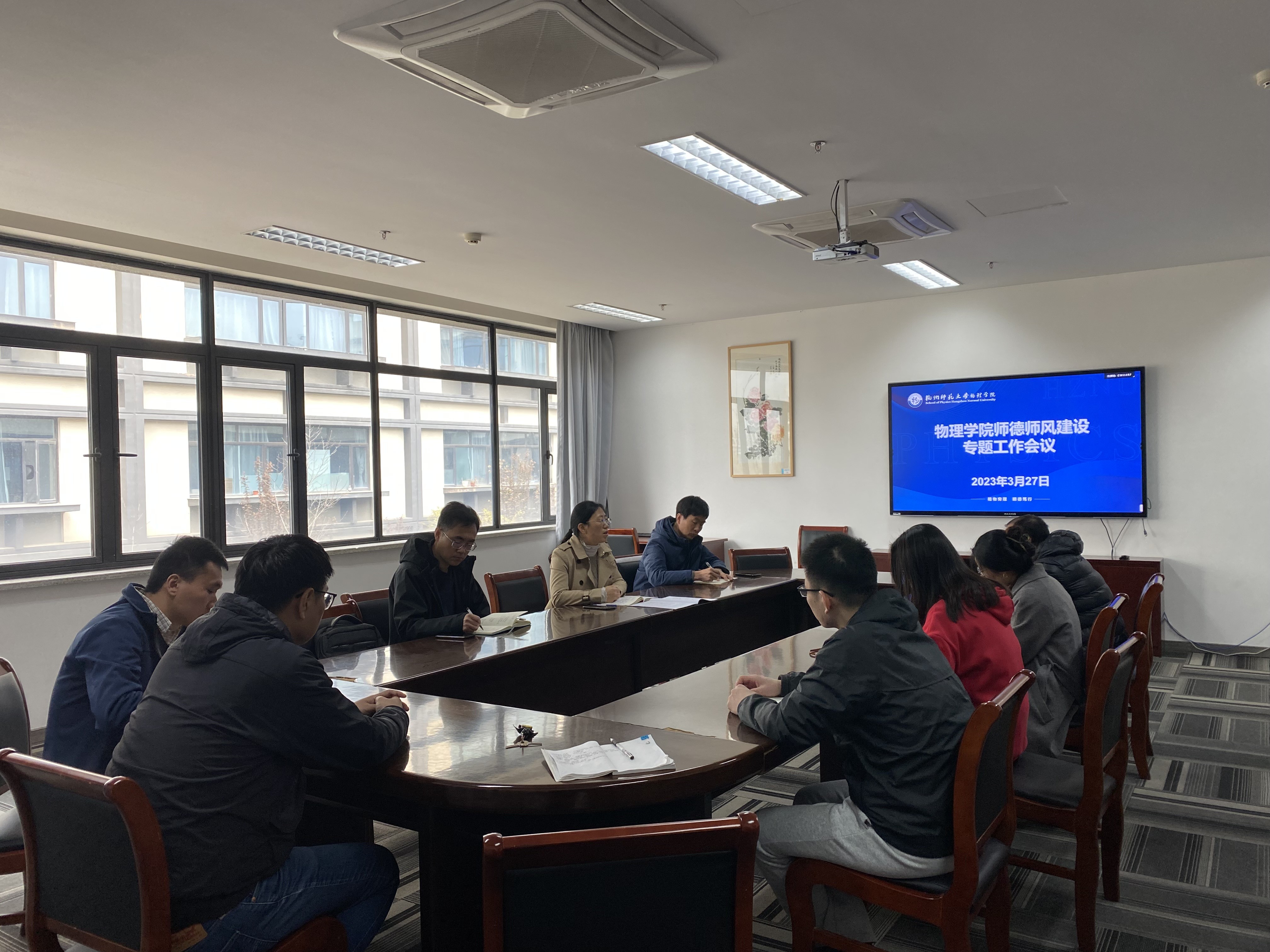 首先,王淑君书记带领大家学习《中共91制片 委员会91制片 关于进一步加强和改进新时代师德师风建设的实施意见》杭师大党委〔2021〕30 号文件精神。会上,通报《违反高校教师职业行为十项准则典型案例》,剖析了近期师德师风警示典型案例。王淑君书记强调,要认真领会教育部师德建设文件精神,正确把握新时代立德树人的基本内涵和根本要求,切实肩负起师德师风建设主体责任,突出正面宣传,强化负面警示,将师德师风这个教师评价“第一标准”落到实处。王淑君书记指出,91制片 一贯深入贯彻落实教师职业行为十项准则要求,加强教师思想政治和师德师风建设,对师德违规问题“零容忍”。最后,王淑君书记结合相关文件要求,就本次专题会议进行总结。她强调,师德师风建设应该常抓不懈,每一位教师都应该严守底线、不踩红线,谨守职业道德规范,严禁触碰负面清单;我们要坚持立德树人根本任务,将师德师风建设融入日常育人工作中,做好91制片 的师德榜样教育和警示教育;各党支部要发挥在师德师风建设过程中的引领作用和组织保障功能,认真谋划开展师德师风教育主题党日活动,强化教师理想信念教育,营造风清气正的良好育人环境。