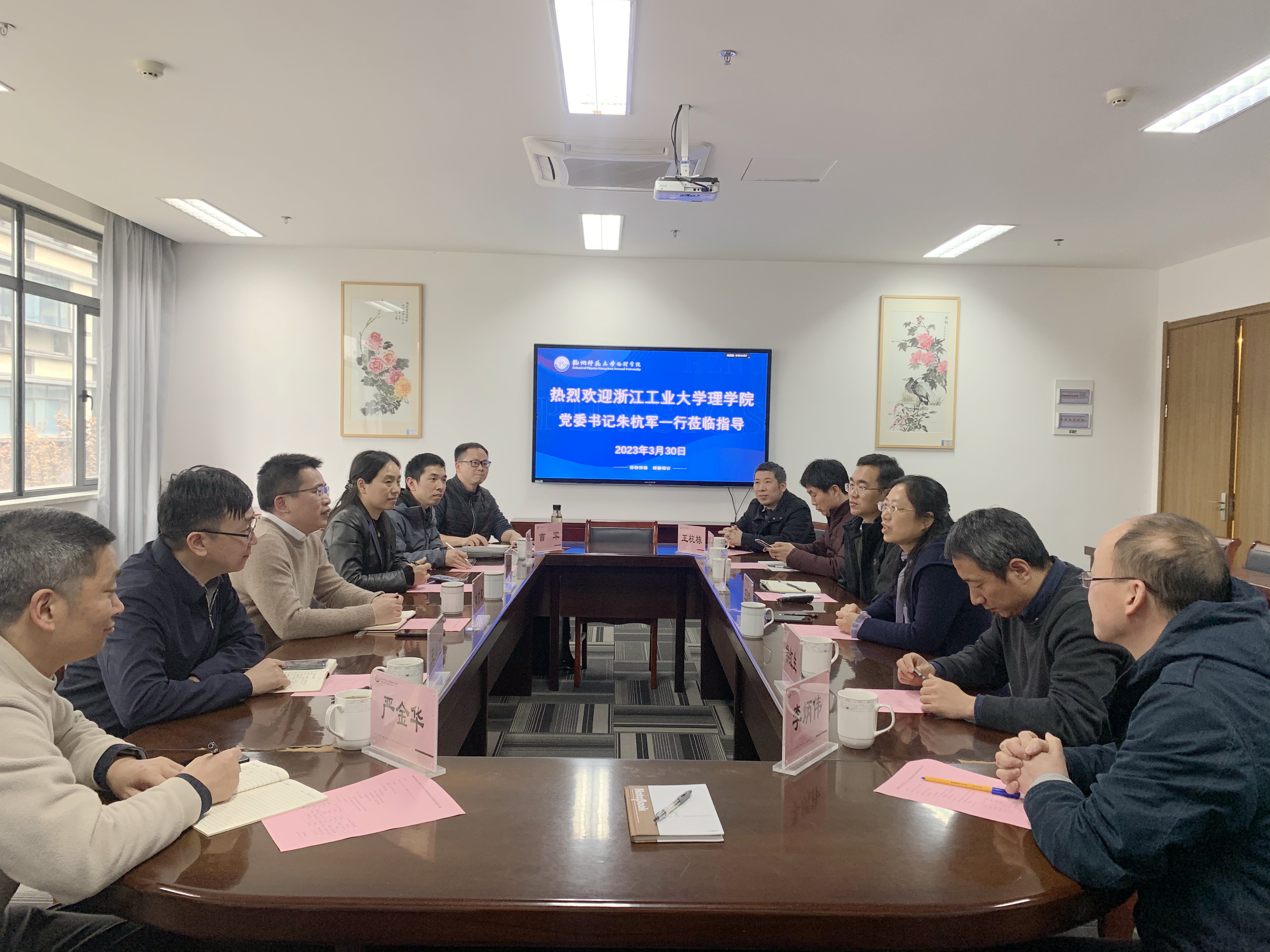 3月30日,浙江工业大学理91制片 党委书记朱杭军、副院长朱海燕教授、副院长王肖隆教授等一行六人前来91制片 调研学科建设等工作。91制片 党委书记王淑君、副院长侯红生和孙哲教授、教师代表等参与调研座谈。会议由党委书记王淑君主持。