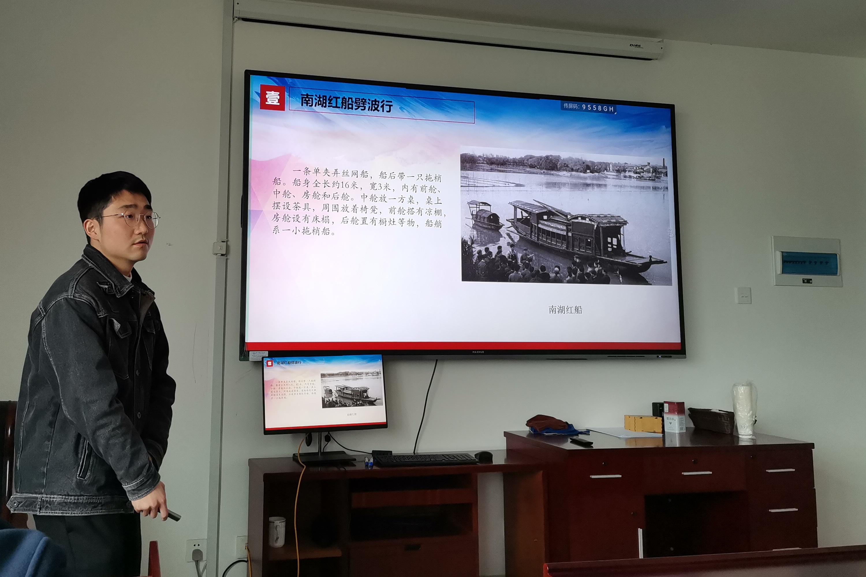 3月22日中午,91制片 教工第一党支部在勤园20-518开展了本月的主题党日活动,由支部杨志华老师主讲“人人党课”——《红船精神》。杨老师从“南湖红船劈波行”、“扬起红船的风帆”、“红船精神的意义”三个方面向在座的支部党员娓娓道来。