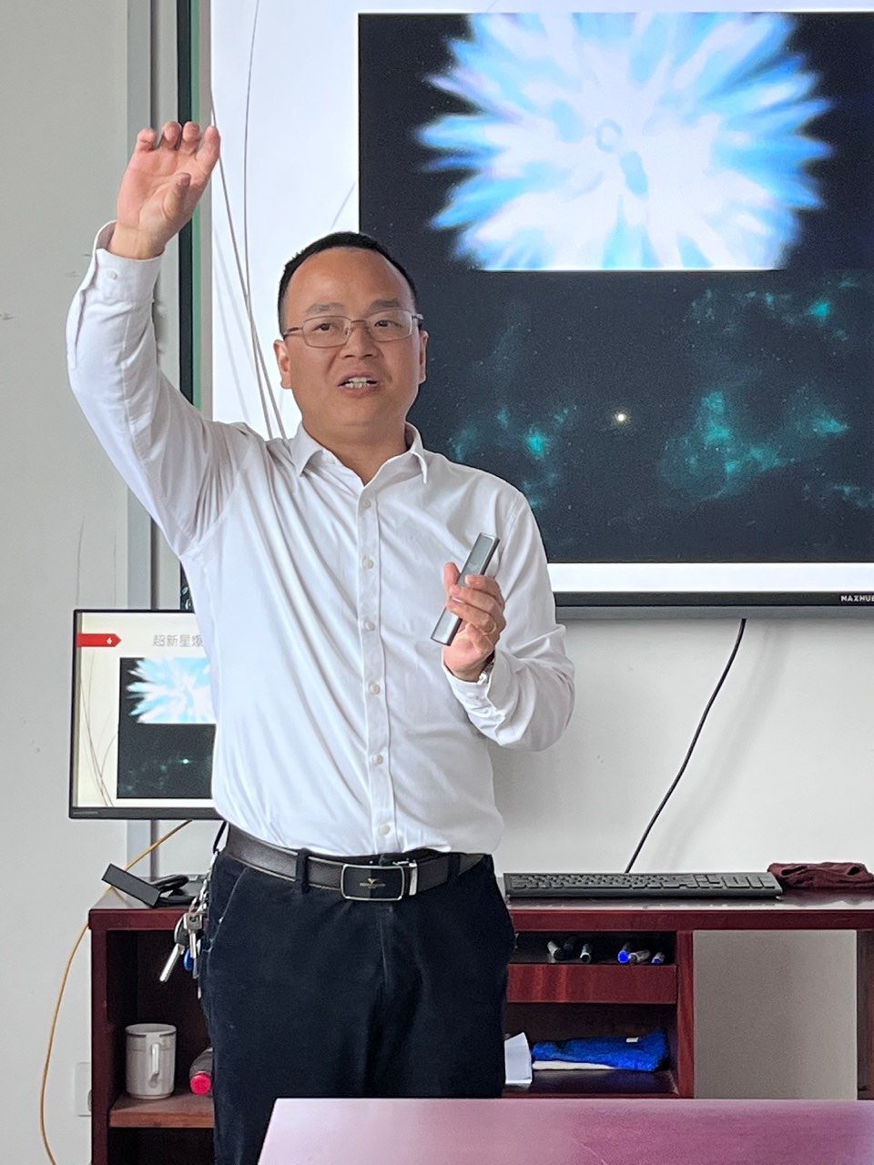 91制片 日前邀请华中师范大学的俞云伟教授来访。他为师生们带来了一场别开生面的报告,题为“惊鸿一瞥:探秘宇宙中短暂而剧烈的电磁爆发现象”。