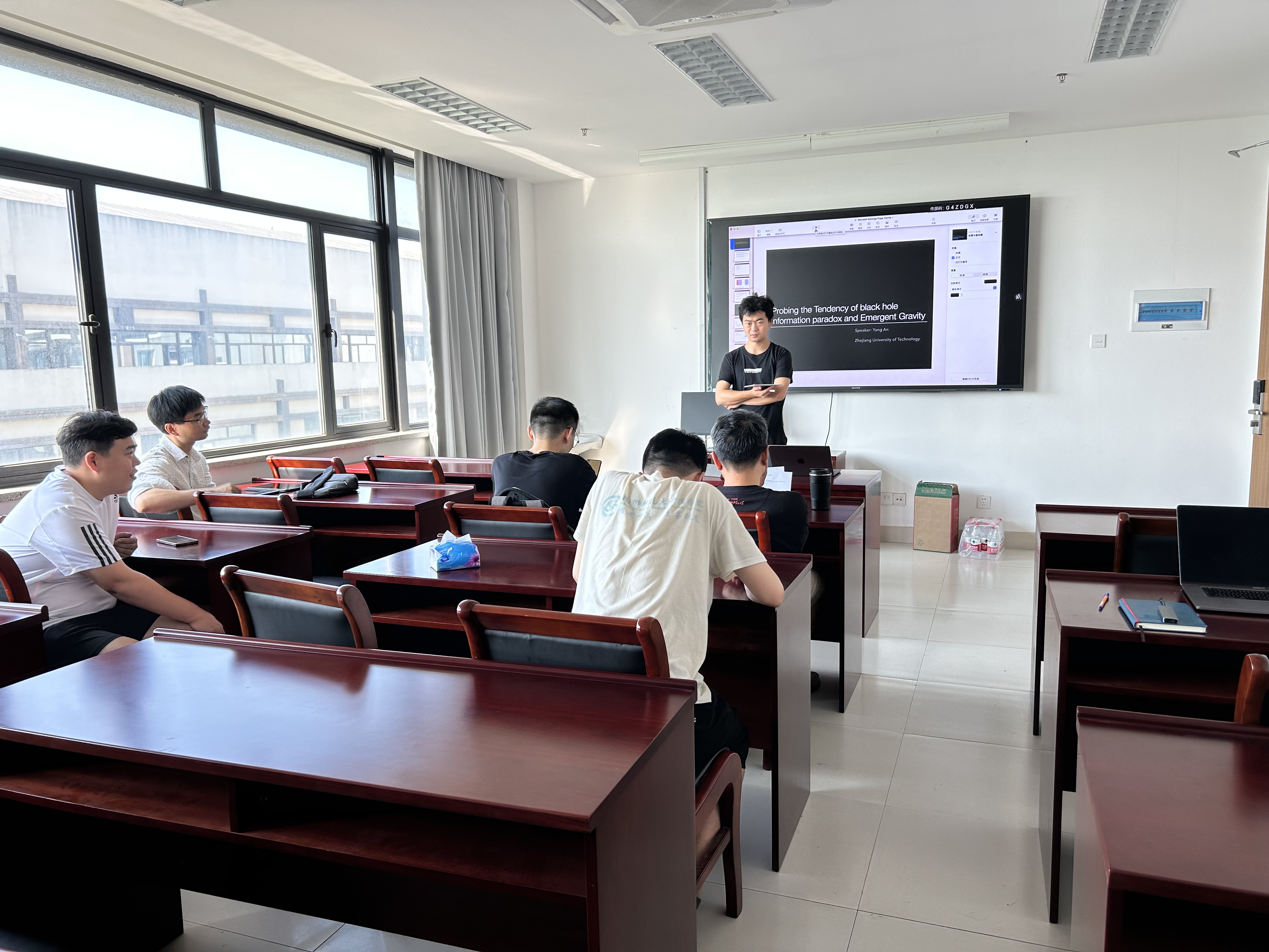 6月8日复旦大学的张成博士来91制片 给理论物理方向的师生分享交流在高能重离子碰撞方向的工作进展。本次学术报告标题为“Azimuthal asymmetries in relativistic heavy-ion collisions: from the initial state to final state”。报告中,张成博士主要分享了两部分的工作,第一是在原子核内夸克、胶子的量子关联导致的集体流现象,第二部分是极端偏心碰撞(UPC)中光生(photoproduction)粒子的产生谱,以此探究高速运动的原子核内的奇异结构。91制片 理论物理和粒子物理方向的多名师生参加了这次报告会,认真聆听并提出问题,交流项目前景和可能的交叉合作课题。在轻松自由的学术交流氛围中,报告会历时一个半小时,参与人收获颇丰。