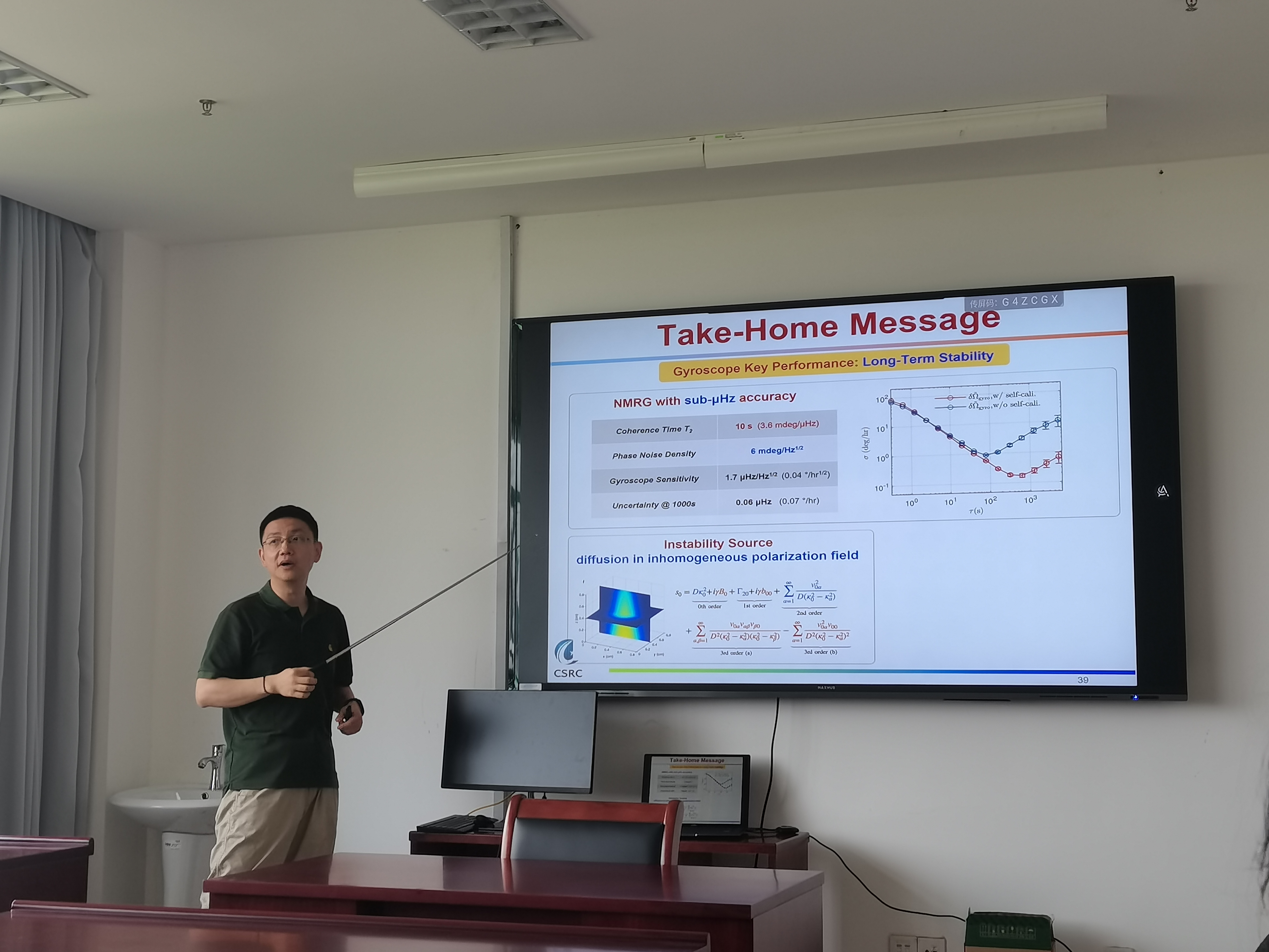 6月12日,北京计算科学研究中心赵楠研究员来91制片 给光学方向的师生分享交流在原子陀螺仪上的实验进展,本次学术报告标题为“ Navigation by Spins ”。报告中,赵楠研究员分享了用碱金属原子(如Rb原子)的电子自旋和稀有气体原子(如Xe原子)的核自旋来实现核磁共振陀螺仪(NMRG),并且讨论了用于提高NMRG稳定性的几种方法。赵老师风趣幽默,细致入微,讲到关键部分还多次举出实例来引导同学们理解。