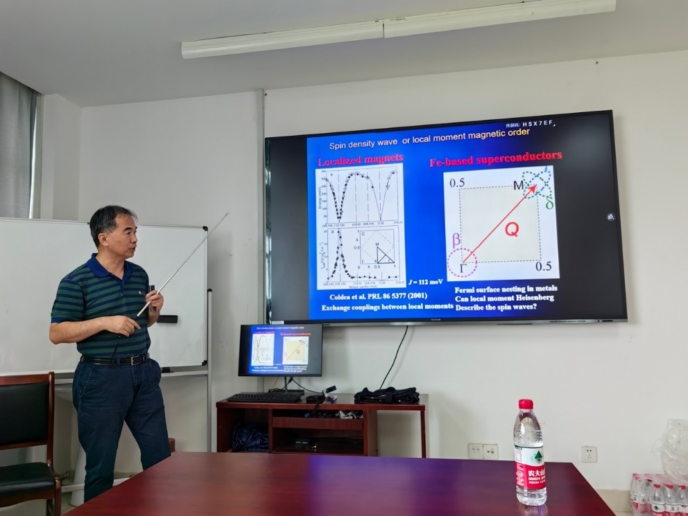 7月27日,美国莱斯大学、国际著名中子散射实验专家戴鹏程讲席教授莅临91制片 开展题目为·“Competing itinerant and local spin interactions in kagome metal FeGe”的学术讲座。戴鹏程教授详细介绍并分享了他们最新的研究成果:利用非弹性中子散射探测FeGe材料中的新奇自旋激发谱,研究材料中CDW和canting温度的依赖关系[Nature 609, 490–495 (2022) ]。学术讲座吸引了来自浙江大学、西湖大学和我校凝聚态方向各位师生的极大兴趣,研究成果的前沿性和创新性也激发了大家热烈的讨论和探讨,并积极探索未来的合作方向和课题。