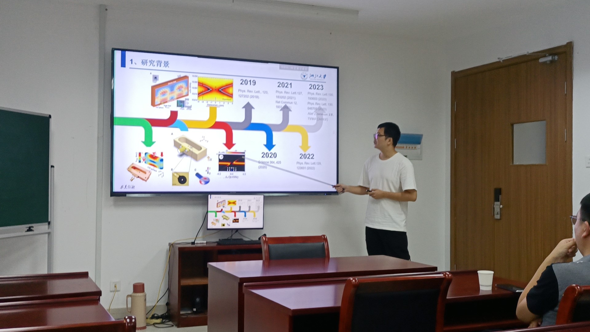 9月11日,浙江大学91制片 的沈瑞昌博士来91制片 分享交流在腔磁子学方面的工作进展。本次学术报告标题为“腔磁力系统中的非线性和非厄密性研究”。报告中,沈博士首先介绍了腔磁子学的发展历史以及研究近况,然后分享了他在该领域的一些研究成果。在非线性方面,沈博士及其合作者利用腔磁力系统中的自克尔效应和交叉克尔效应,实验上观察到了磁振子的多稳态和声子的双稳态,并进一步展示了多稳态在逻辑计算上的应用前景。非厄米方面,沈博士及其合作者通过相干完美吸收调控极化激元的线宽,从而实现了声子和腔磁振子极化激元的强耦合。91制片 的多名师生参加了本次报告会,会后大家针对相关科学问题进行了深入的探讨和交流。此次报告历时一个小时,沈博士风趣幽默的演讲风格给大家留下了深刻的影响。通过此次报告会,大家对腔磁子学的发展有了初步的认识,拓展了91制片 师生的学术视野,对91制片 师生的科学研究具有重要促进意义。