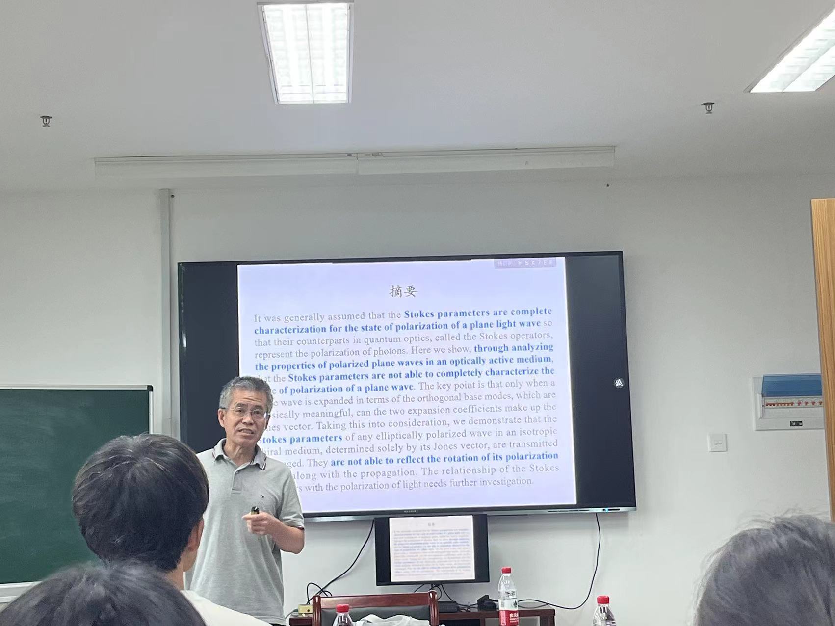 9月15日上午,上海大学物理学教授,博士生导师李春芳教授应邀来91制片 开展题为“Stokes parameters alone cannot completely characterize the polarization of plane light waves”的学术报告。李春芳教授从光场偏振的传统理论出发,详细介绍了光场偏振的两种主要描述方法,即Stokes参量和Jones矢量,分析了手性介质中平面波Stokes参量的特点。报告中,李春芳教授重点讨论了Stokes参量是否可以完全表征光的偏振以及Stokes参量本身的物理意义。91制片 多名师生参加了本次学术报告,认真聆听并提出问题,会后多位老师又与李春芳教授进行了深入的探讨和交流,大家表示报告内容新颖有特色,使大家深受启发。