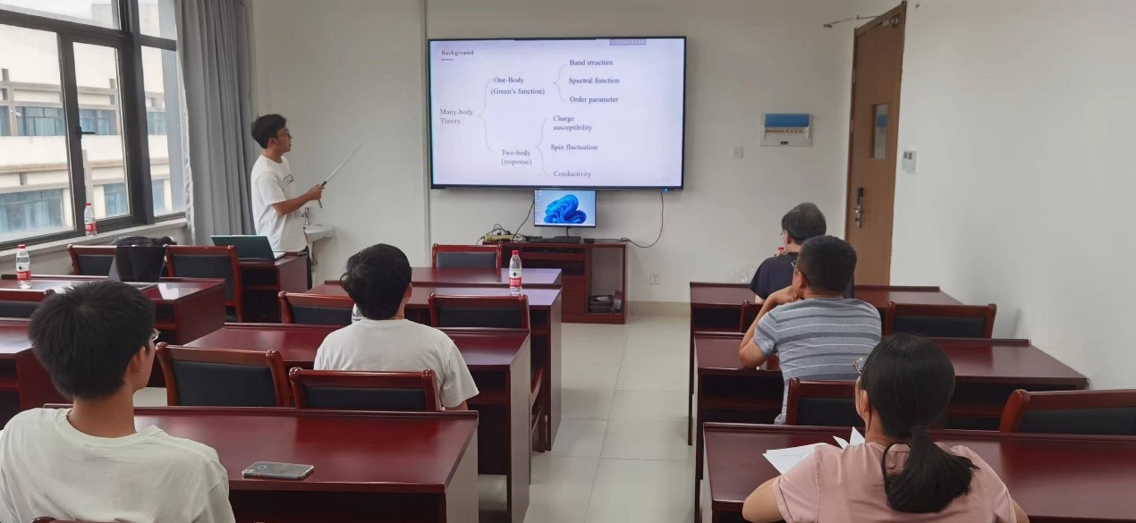 9月20日下午,浙江大学物理高等研究院的李辉博士应邀来91制片 开展题为“多体近似理论中物理响应函数的计算框架”的学术报告。凝聚态系统中对实验上可直接测量的响应函数的准确计算始终是巨大的挑战,也是凝聚态理论中的核心问题之一。报告中,李辉博士重点介绍了他发展的基于GW近似的一套能计算任意两体关联函数的理论框架,即协变两体理论。该框架能严格保持系统的全局规范对称性与涨落耗散定理,在Hubbard模型中的自旋涨落计算表明其具有高准确性与低计算复杂度的优势。同时,这一理论框架还可以应用于不同的多体近似理论中,往往都能保持其对称性与涨落耗散定理。91制片 多名师生参加了本次学术报告,报告过程持续了2个小时,参会的老师与李辉博士进行了深入的讨论和交流,并商讨了未来合作的可能性。