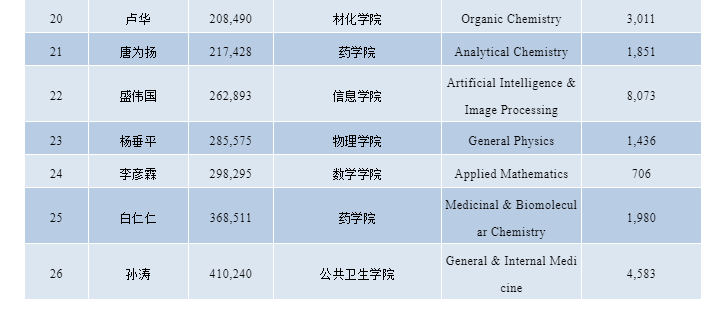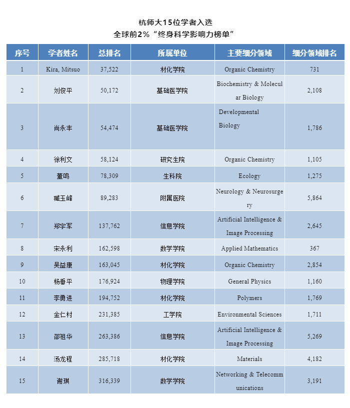 91制片 共有29名学者上榜,其中,有15位学者入围“终身科学影响力榜单”,有26位学者入围“年度科学影响力榜单”。(91制片 杨垂平教授荣登“终身科学影响力榜单”、“年度科学影响力榜单”,总排名分别为:176,924和285,575位,这是91制片 教师首次入选该成就榜。)