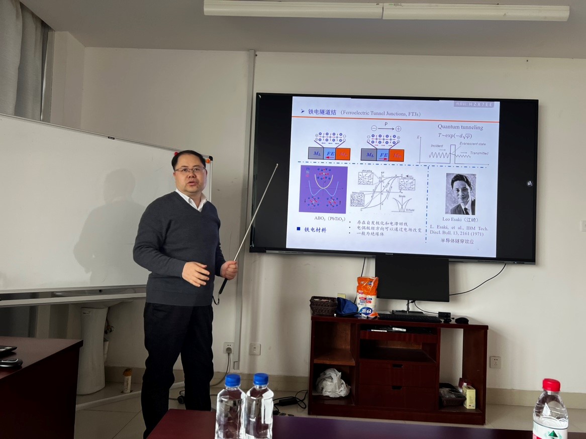 12月13日下午,南京林业大学郑小宏教授应邀来91制片 开展题为“二维铁电隧道结的模拟设计”的学术报告。铁电隧道结是一类由铁电薄膜充当隧穿势垒的隧道结。伴随着外电场下铁电极化方向的反转,铁电势垒的高度或宽度将发生很大变化进而引起隧穿电阻的巨大变化,表现出巨电致电阻效应,这一效应使得铁电隧道结在非易失性存储器中具有重要的应用潜力,因而引起了人们的广泛关注。本场报告郑小宏老师首先用深入浅出的语言向参会的各位老师和学生介绍了铁电隧道结的研究背景以及所涉及到的半导体物理的基础知识和概念,随后着重介绍了他们小组近些年在二维铁电隧道结研究中取得的一些重要进展以及提出的一种基于组分材料功函数和带隙合理选择的二维铁电隧道结的可行设计方案。基于这样的设计方案,人们可以设计出性能优异的铁电隧道结,获得很高的隧穿电致电阻(TER)比率。91制片 多名师生参加本次报告,认真聆听并积极提问。会后多位老师又与郑老师进行了深入探讨、交流以及商讨今后可能的合作机会。