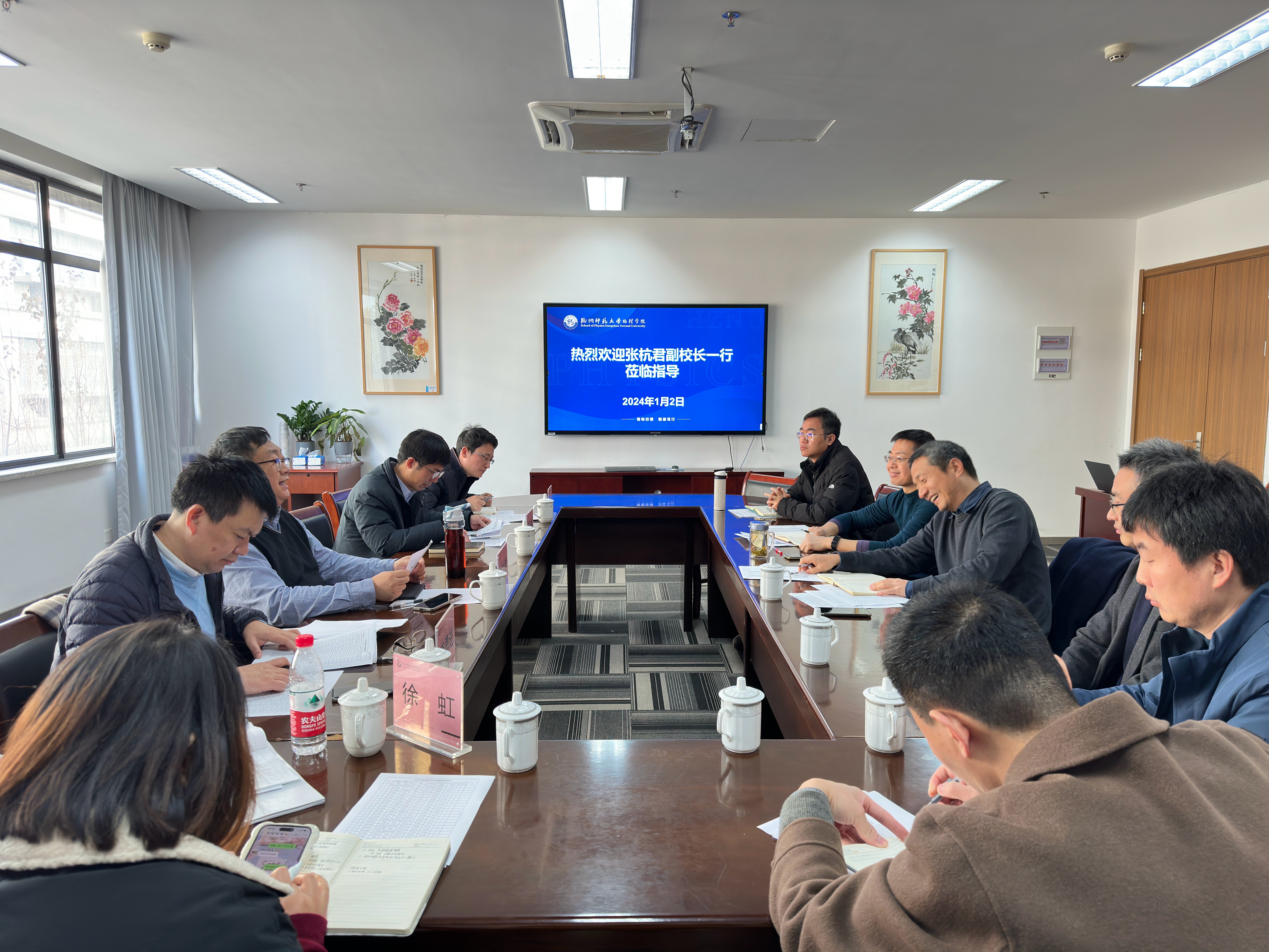 1月2日,副校长张杭君一行5人莅临91制片 调研,校人事处处长夏卫东、科研处处长李勇进、设备与实验室管理处副处长孟斐宇和91制片 全体班子成员参加座谈。