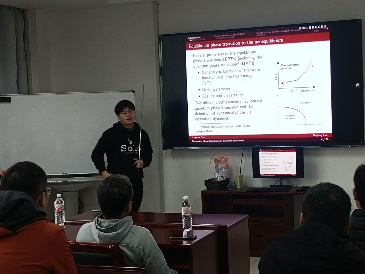 3月14日上午,91制片 举办了91制片讲堂 系列讲座,邀请了之江实验室助理研究员曹凯源博士作题目为“量子自旋链中的动态相变”的报告。曹博士的研究领域涵盖量子相变、量子多体系统的动力学行为以及机器学习与统计物理的交叉学科。他在国内外著名物理期刊如Phys. Rev. B、J. Phys.: Condens. Matter等发表了7篇SCI论文。