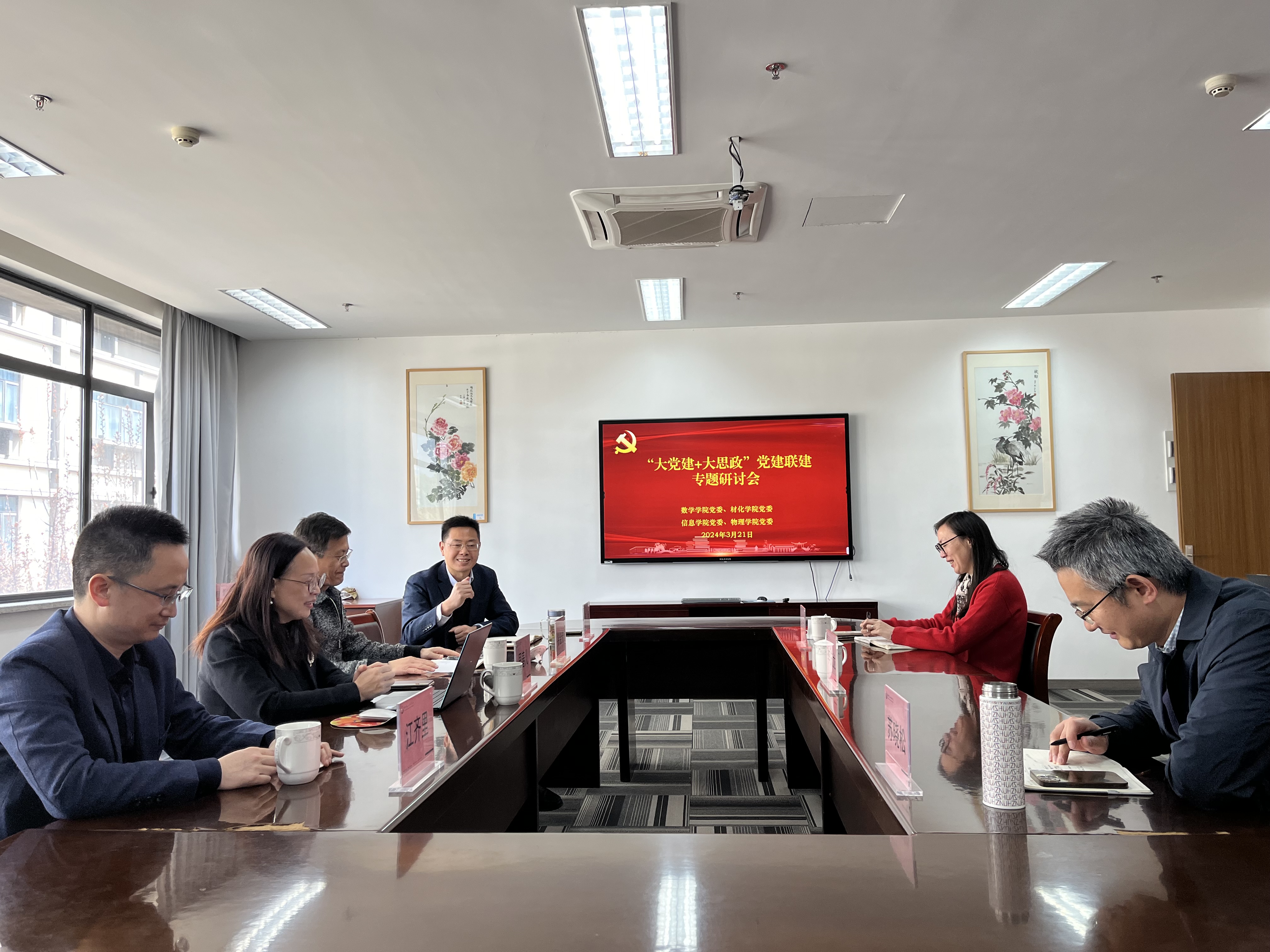 3月21日上午,由我校数学91制片 、91制片 、材化91制片 、信息91制片 联合举办的“大党建+大思政”党建联建专题研讨会在91制片 党员之家召开,四个91制片 的党委书记、副书记参加会议。