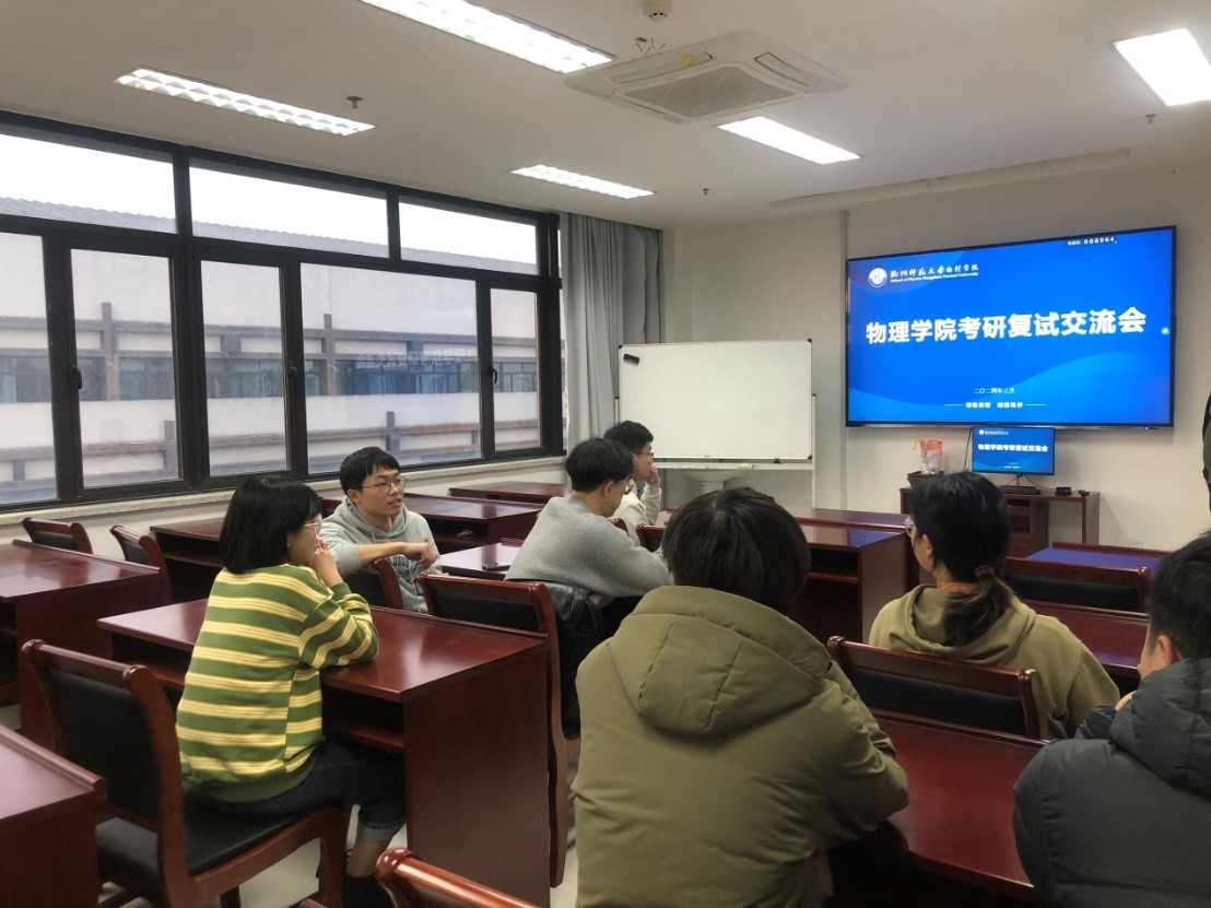 交流会上,首先由周能吉老师们介绍了交流会的初衷和要求,随后与会的研究生代表依次分享了自己的复试经验。从复试流程的角度详细的介绍了复试的各个项目,强调要提早了解复试中笔试部分的考察形式和内容,做好复习规划;建议在复试前多熟悉常见物理学相关专业名词;还需提前撰写好英文的自我介绍并且熟悉背诵。接着,研究生代表们又给出了一些复试技巧。他们指出在复试过程中要保持积极乐观谦卑的态度,在遇到问题时不要慌张,真诚作答,对于面试官的提问要有及时回应,避免冷场情况的出现。最后,由本科生们结合具体报考情况与研究生代表们自主互动交流。