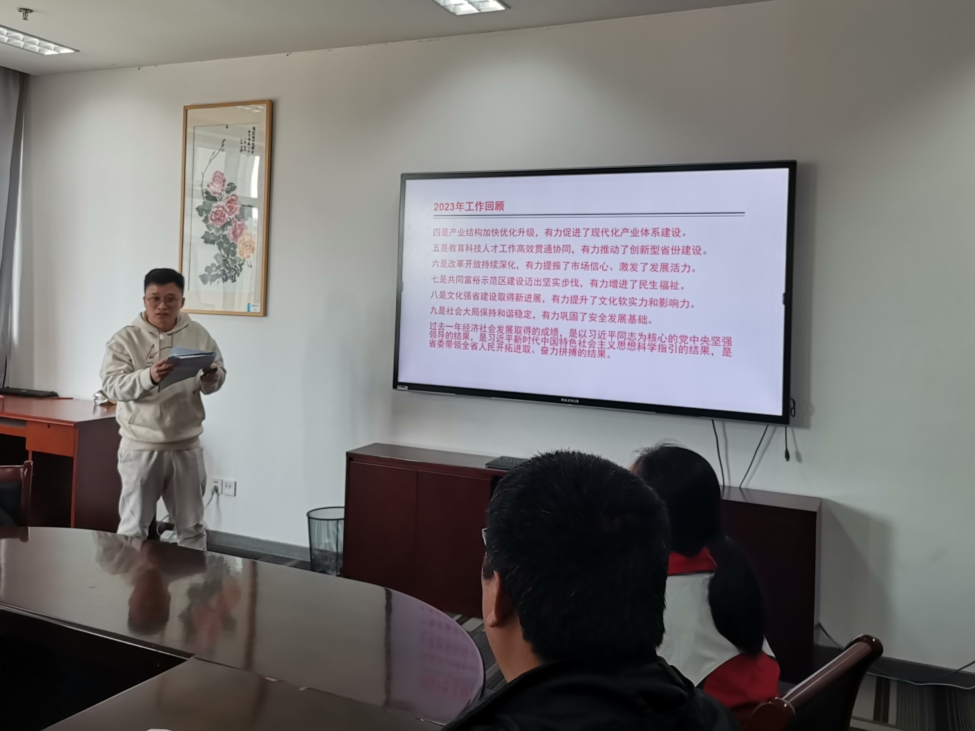 李腾超老师首先介绍了在浙江省第十四届人民代表大会第二次会议上省长王浩作的政府工作报告。报告对2023年的工作进行了回顾,提出了2024年的目标任务和重点工作。随后李老师结合自己在浙江大学求学时的所见所闻所感,介绍了中科院院士、浙江大学91制片 教授唐孝威的科研工作事迹:浙江大学玉泉校区第十二教学楼,有一间“院士办公室”,里面的布置十分简朴,两张干净的小桌子,几张简易的椅子,一摞摞厚厚的文献。这里正是唐孝威院士工作的地方。唐院士是我国“两弹”研制的幕后英雄,主要从事原子核物理、高能实验物理方面的研究,后来又转到生物物理、医学物理、核医学、脑科学等交叉学科研究领域工作。唐院士长期坚守在教学科研第一线,在科学研究、人才培养等方面做出了卓越贡献。