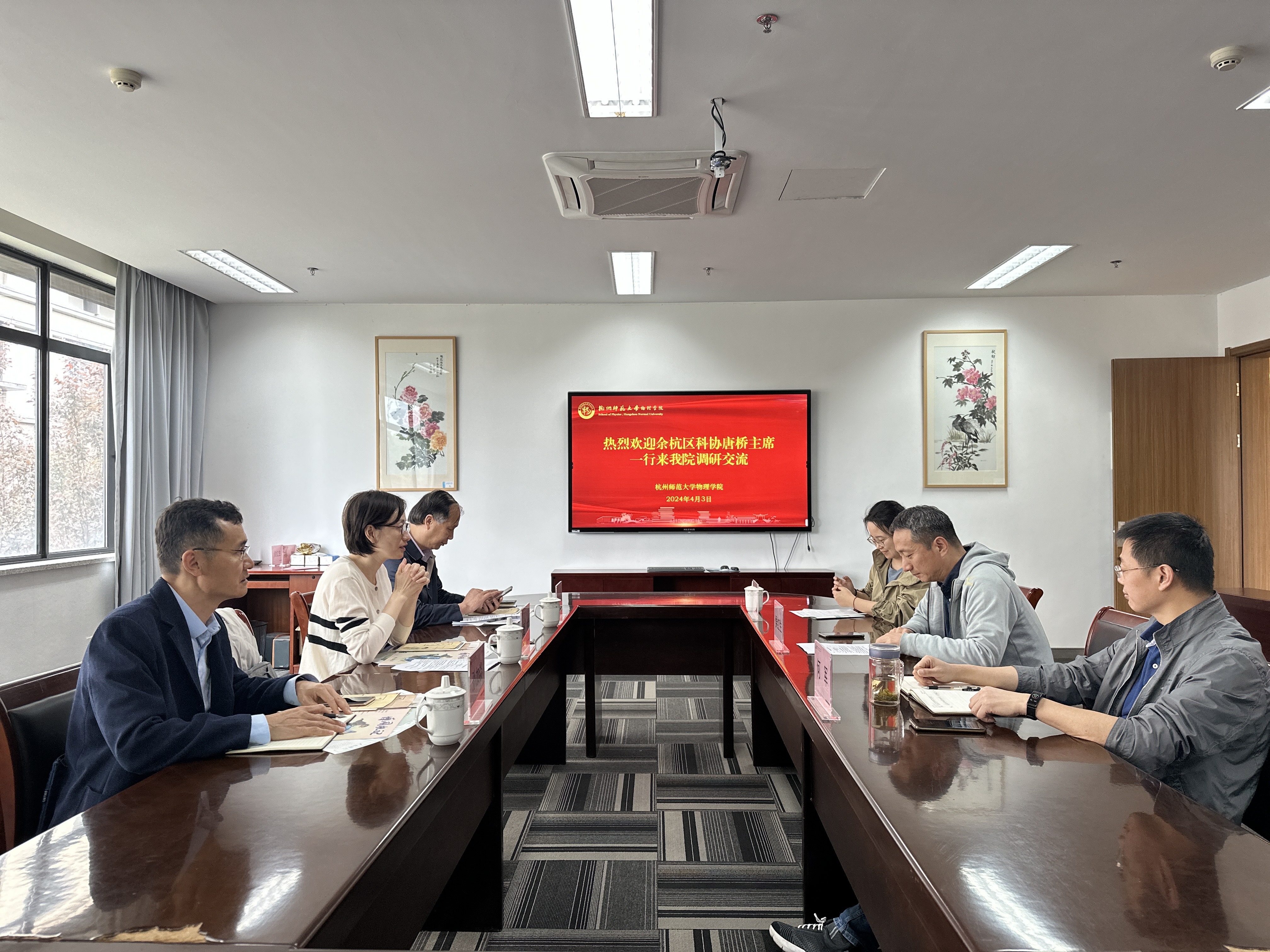 4月3日,余杭区科协主席唐桥、副主席黎德峰一行来91制片 走访区政协委员、院长侯红生教授,并就青少年科普教育工作开展调研。党委书记何军和教师代表参加座谈。