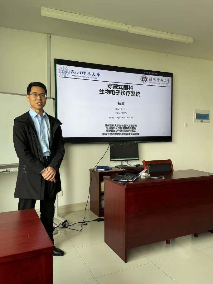 为了加强多学科交叉,营造良好的学术氛围,4月11日下午两点,温州医科大学杨成博士应邀来91制片 作题为“穿戴式眼科生物电子诊疗系统”的报告。杨成博士一直致力于柔性电子科学-眼科学交叉研究,发展穿戴及植入式眼健康生物电子诊疗系统,探讨生物电子在眼健康生理信息检测及疾病精准干预方面的关键技术和转化应用研究。