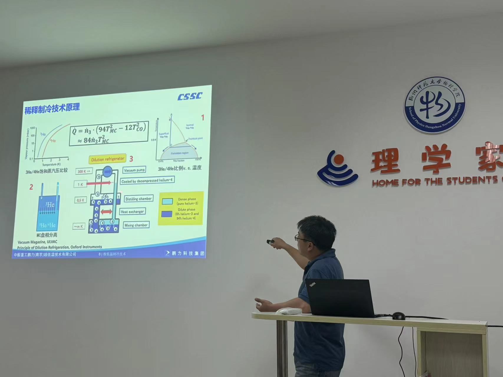 为了促进基础物理学在应用方面的推广,4月17日下午两点,中船鹏力超低温技术有限公司程天博士应邀来91制片 作题为“极低温制冷技术及其相关仪器设备的开发“的报告。程天博士在低温技术领域拥有超过十五年的研发经验,2019年回国后在鹏力超低温组建极低温技术研发团队,开发包括稀释制冷机、氦三制冷机等极低温领域低温恒温器产品。