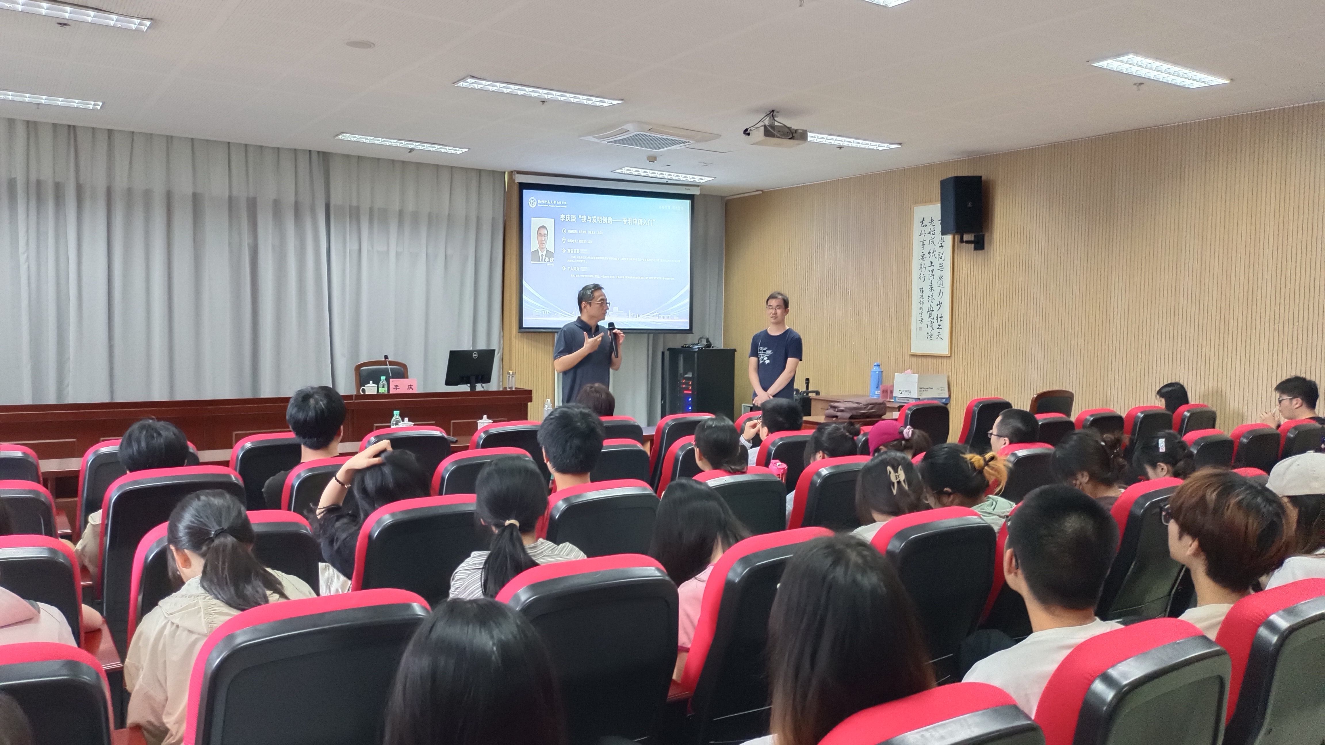 6月7日下午,91制片 2016届物理学校友、中国发明协会会员、安徽信息工程91制片 教师李庆返校作题为“我与发明创造——专利申请二三事”讲座。91制片 院长侯红生教授、校友导师徐庆君老师出席讲座。