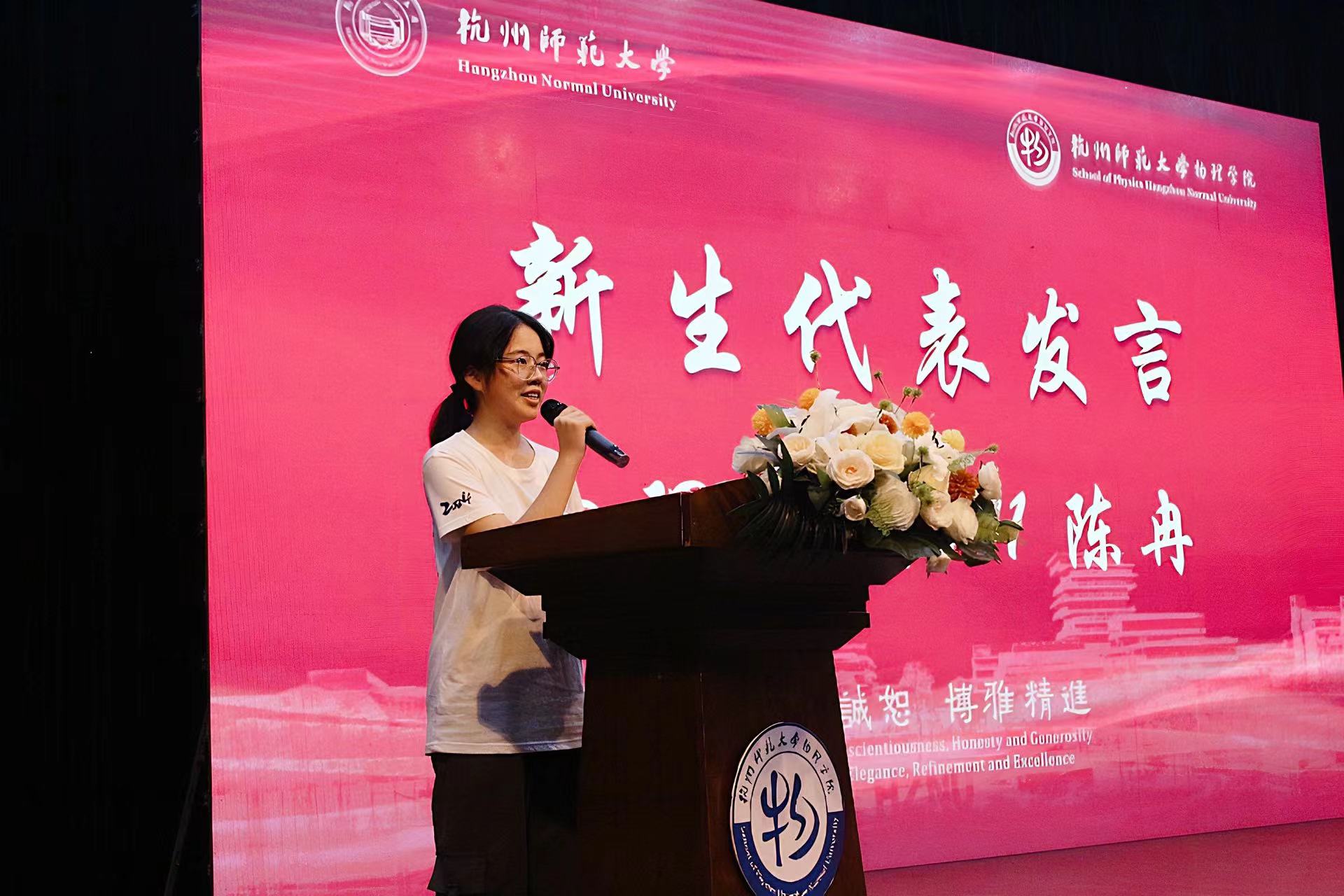 物理本硕241班陈冉同学作为新生代表,针对新生们面临的挑战和责任提出了应对之道,即信念、担当和奋斗。她呼吁新生们要团结互助,为91制片 和学校的发展贡献力量。