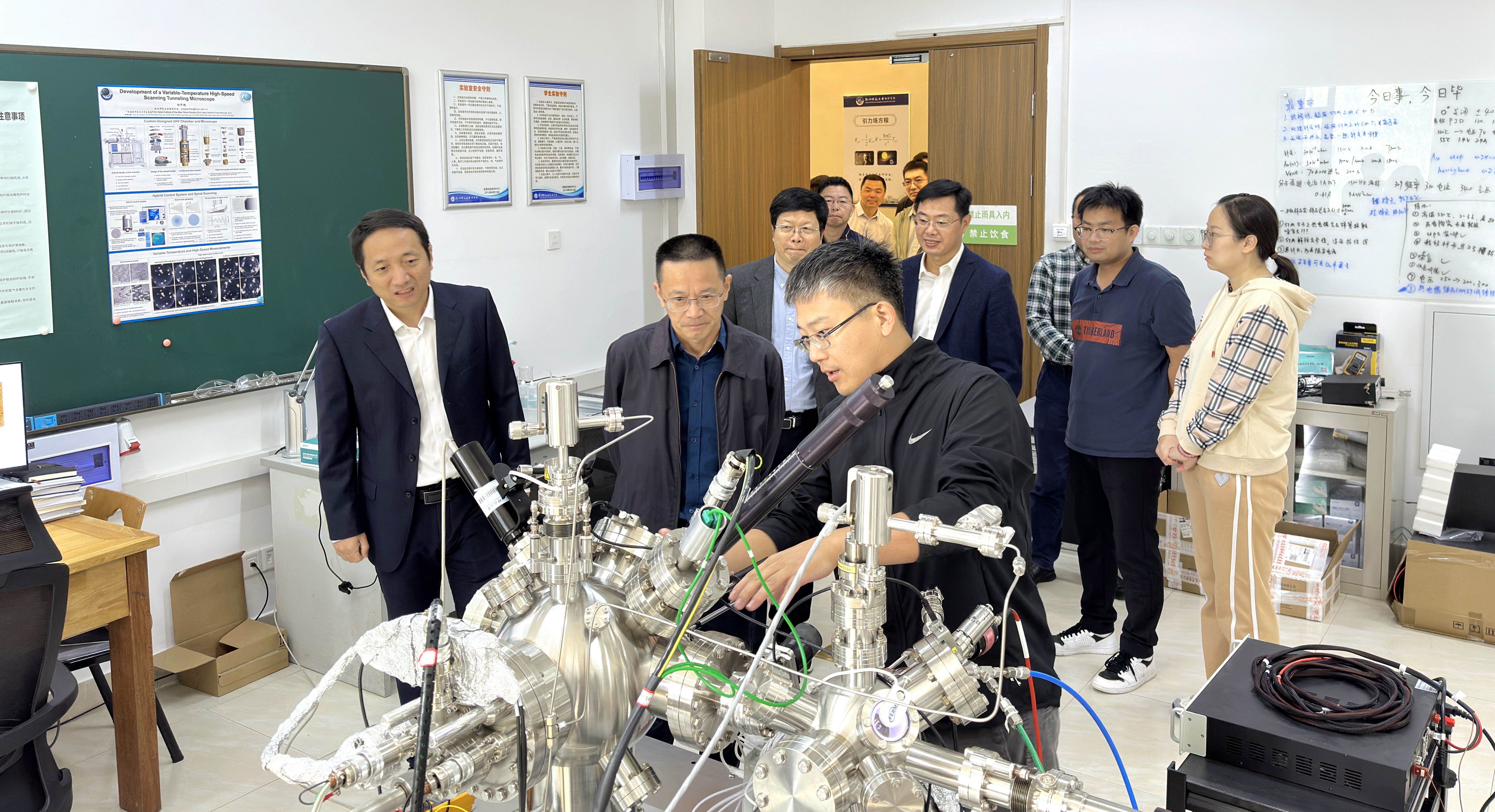 郭东风书记首先参观了91制片 表面物理、低温物理、量子光学等科研实验室,与科研人员亲切交谈,详细了解科研设施、研究方向及科研成果等情况,鼓励大家锚定国家重大战略需求,发挥学科特色优势,力争出更多标志性成果,为学校争创“双一流”作出贡献。