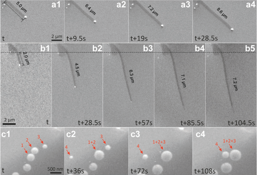 图1. 利用原位扫描电镜观察石墨烯纳米带的生长动力学过程.