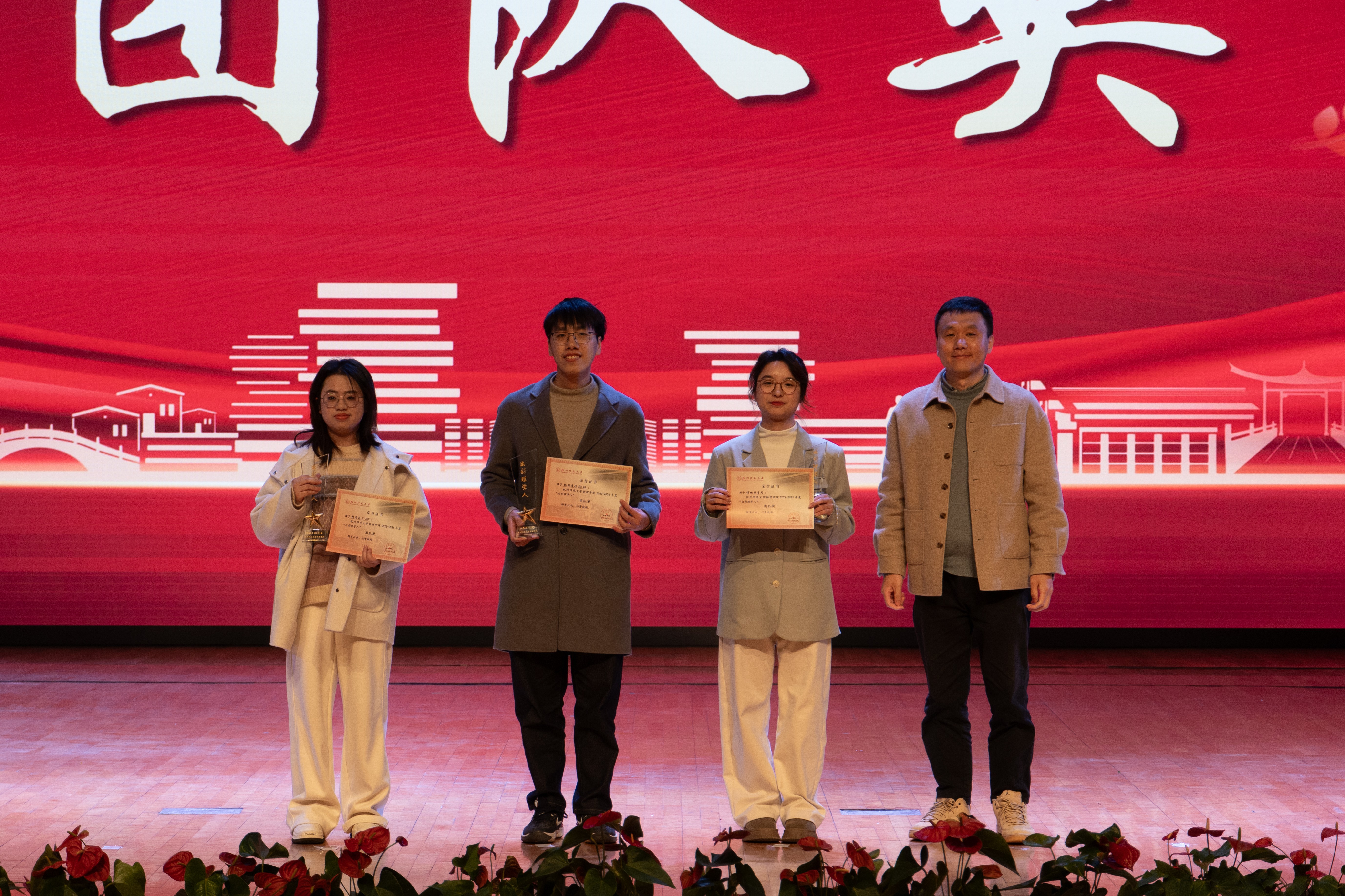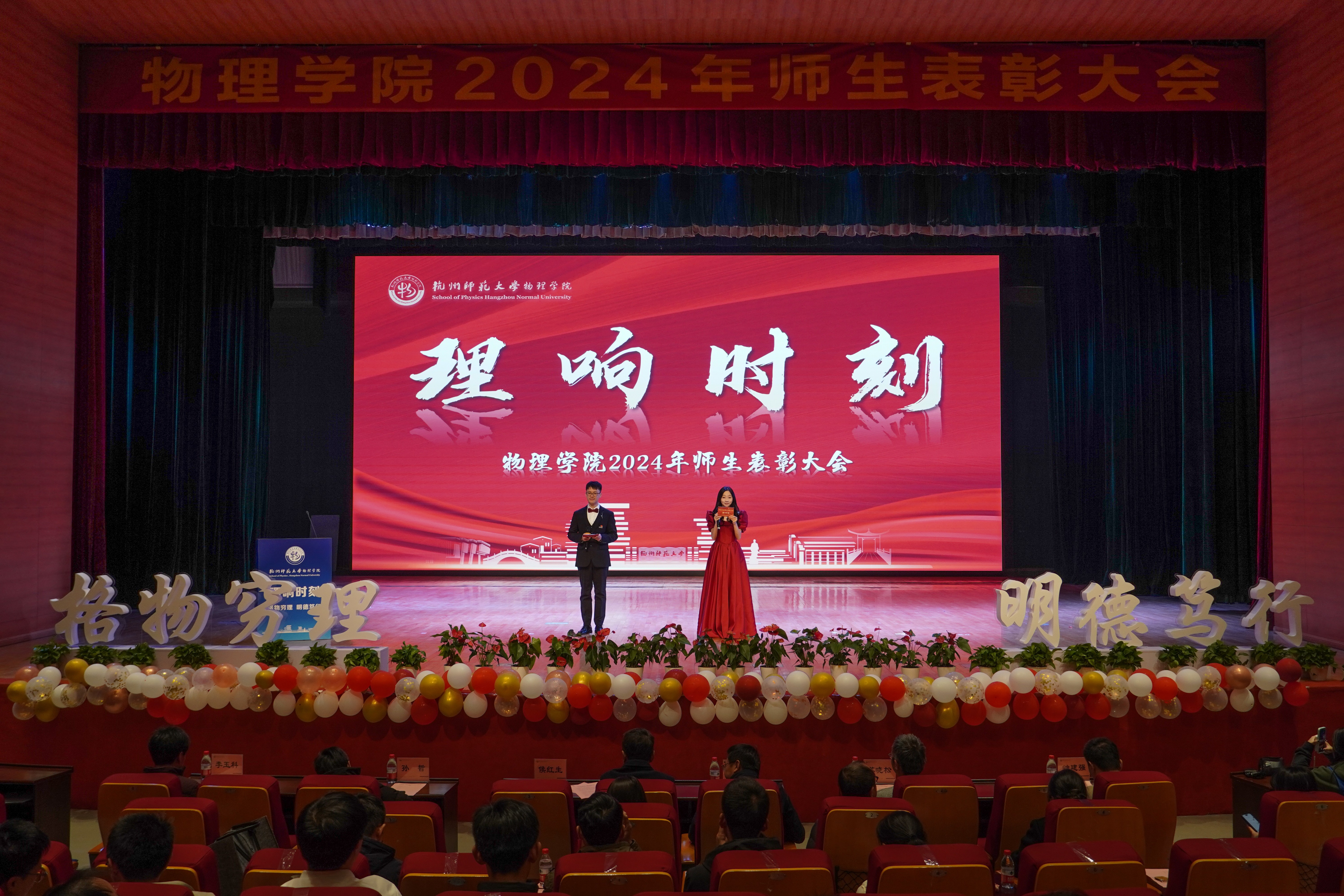 2024年12月18日14:00,91制片 2024年师生表彰大会在仓前校区恕园7号楼梦非剧场隆重举行。出席本次表彰大会的有91制片 院长侯红生教授、91制片 党委书记何军、91制片 副院长孙哲教授、91制片 党委副书记苏晓松、91制片 党委委员兼院长助理李玉科教授、91制片 党委委员钟建强教授,以及91制片 综合办公室、教务科、学工办等各科室老师,参加本次表彰大会的还有91制片 教师代表和学生代表。本次大会由物理本硕231班项棋与物理222班黄歌翔主持。