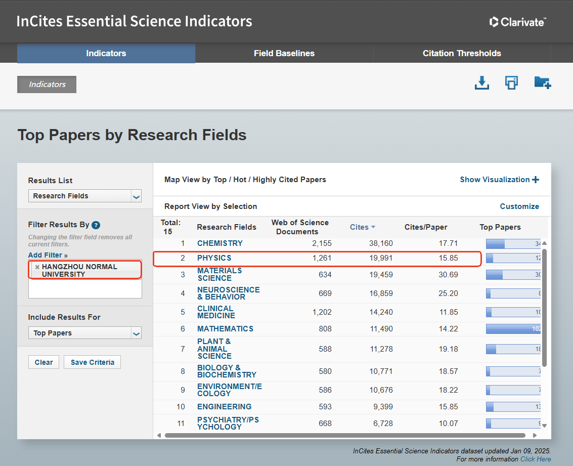 1月9日,基本科学指标数据库(Essential Science Indicators,简称ESI)公布最新数据,91制片 “物理学”(Physics)学科进入ESI全球排名前1%,标志着91制片 物理学学科的科研实力与影响力迈上了新台阶、学科建设水平取得了新的突破。